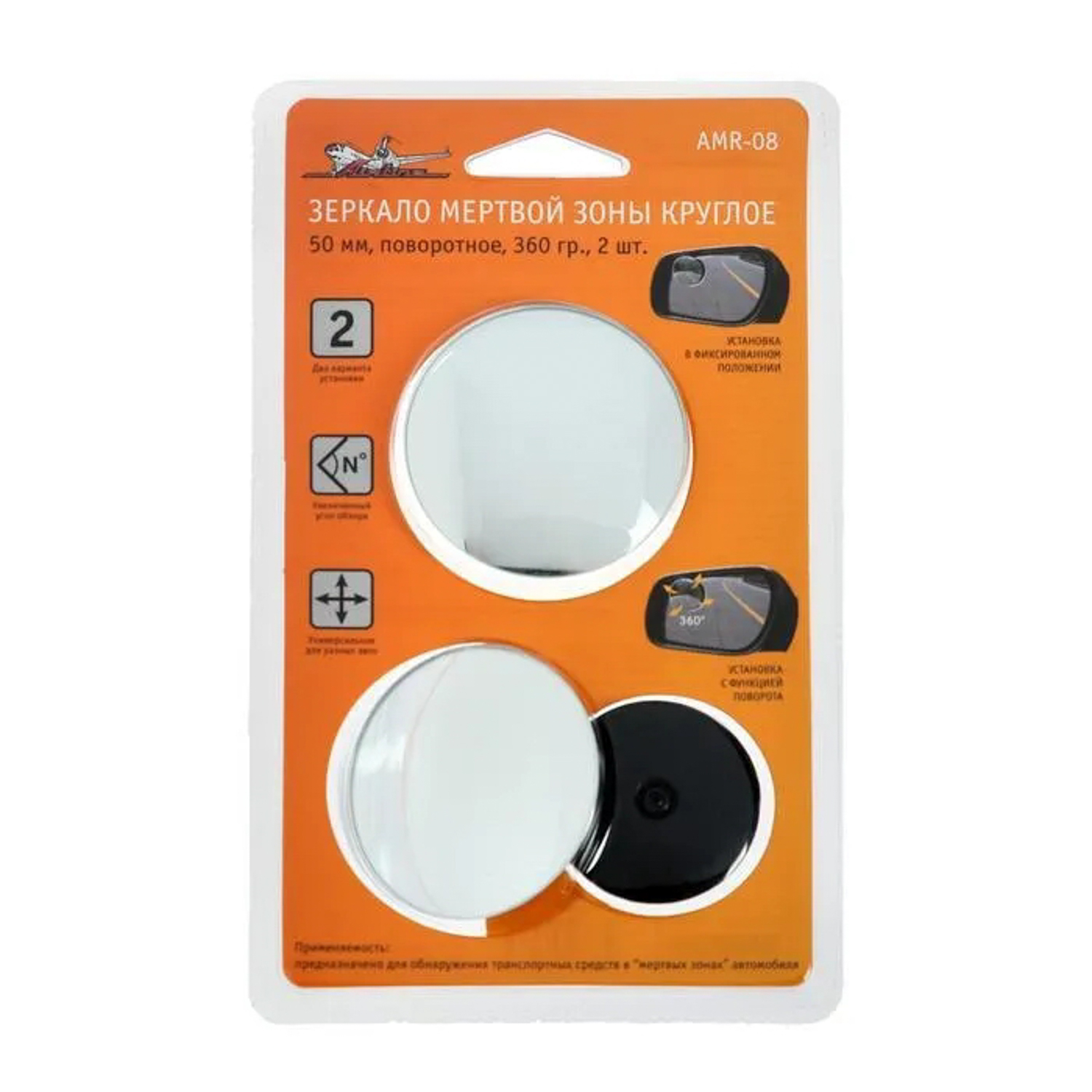 яяяЗеркало мертвой зоны Airline AMR-08, круглое, 50 мм, набор 2 шт 5204575