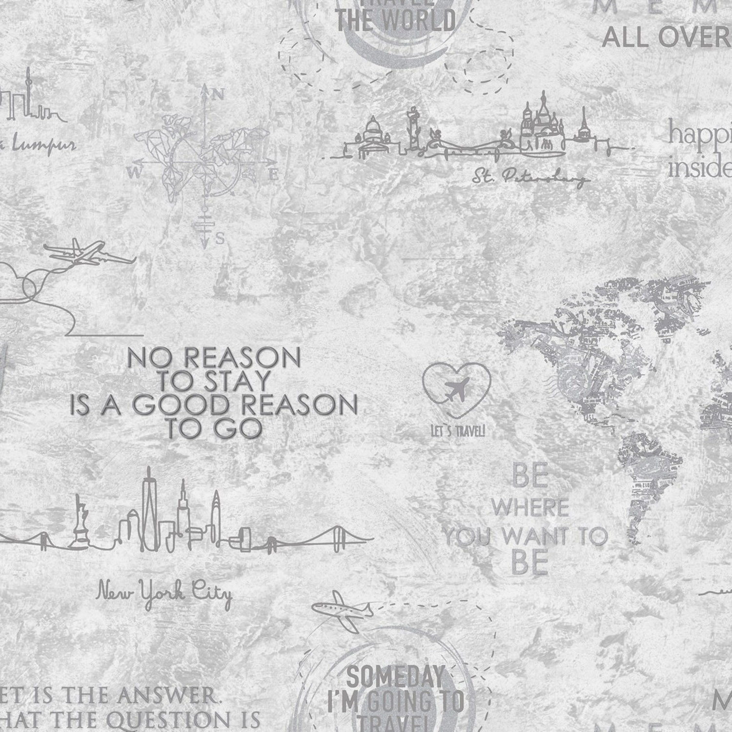 На создание новой коллекции Le Tour ТМ Ateliero дизайнеров вдохновила тема путешествий. Что может быть лучше, чем сесть в самолет, отключить мобильный телефон и электронную почту, оставить за бортом списки неотложных дел, которые никогда не заканчиваются и отправиться навстречу приключениям? Ничто так не заряжает энергией и положительными эмоциями как смена привычных «декораций» на новые – новые места, новые страны, новые знакомства, новые открытия. Легкая тематическая коллекция Le Tour наполнит ваш дом приятными воспоминаниями о прошлых путешествиях и вдохновит на новые! Коллаж из мотивирующих надписей и контурных силуэтов городов собирается в стильный, неперегруженный дизайн, поэтому мотивы можно использовать на все четыре стены. Актуальные фоны-компаньоны с текстурой штукатурки послужат отличной базой для оформления любого помещения в разных стилистических решениях. Серия представлена коммерческими колористиками серо-бежевой гаммы. Особо стоит отметить эффектную графитовую колористику, которая идеально справиться с задачей зонирования пространства и создания акцентных стен. Коллекция Le Tour универсальна, будет отлично смотреться в любом помещении – актуально в кухне-гостиной, стильно в спальне, модно в комнате подростка, креативно в прихожей. Серия прекрасно сочетается с интерьерными аксессуарами из дерева, стекла или металла. Le Tour - это отличный способ продемонстрировать свою любовь к путешествиям и исследованиям, добавив изюминку декору жилья. Мечтайте, дерзайте, путешествуйте и мир засияет новыми красками!