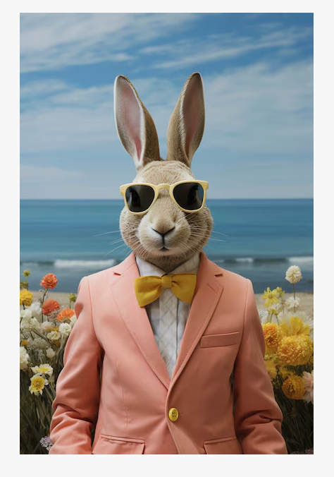 Картина "Заяц в розовом смокинге" на деревянном подрамнике  40х50 см