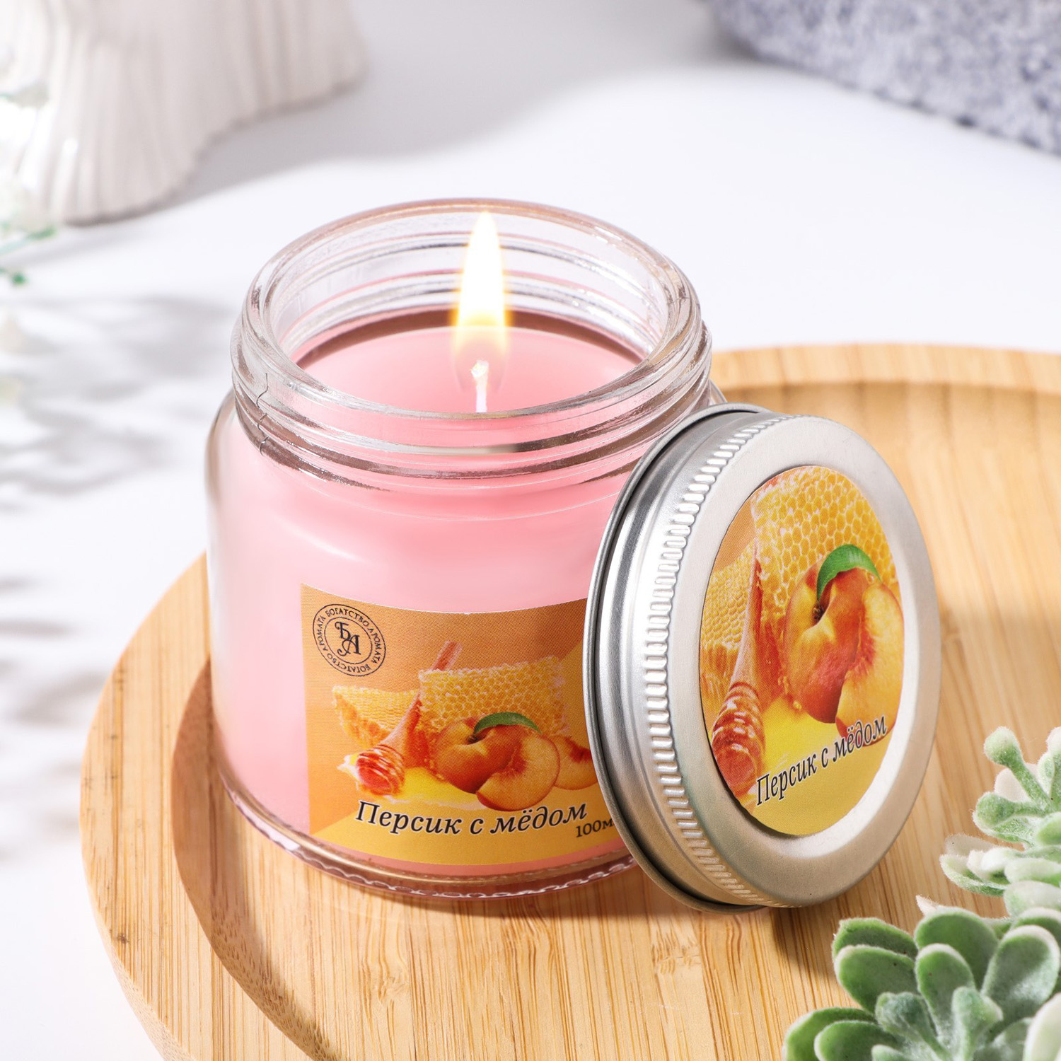 Свеча ароматическая в стекле 6,3см, 100мл, персик с мёдом 9338117