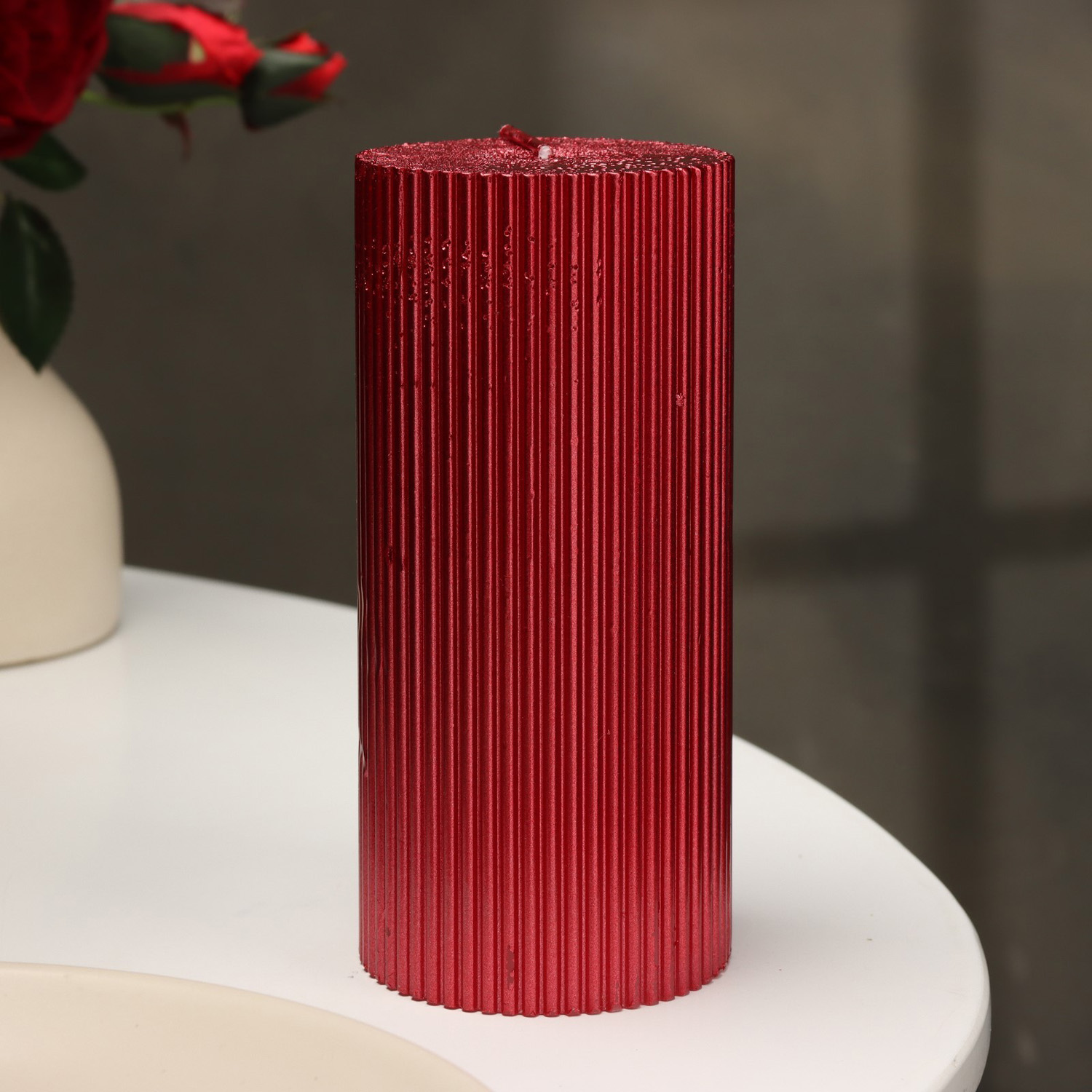 Свеча "Рельеф", 7×15см, красный металлик   9814719