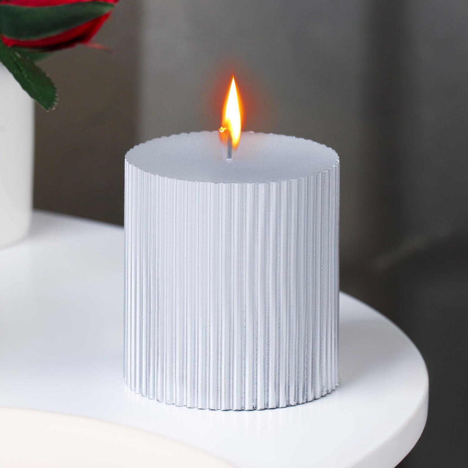 Свеча "Рельеф", 7×7.5см, серебряный металлик 9814718