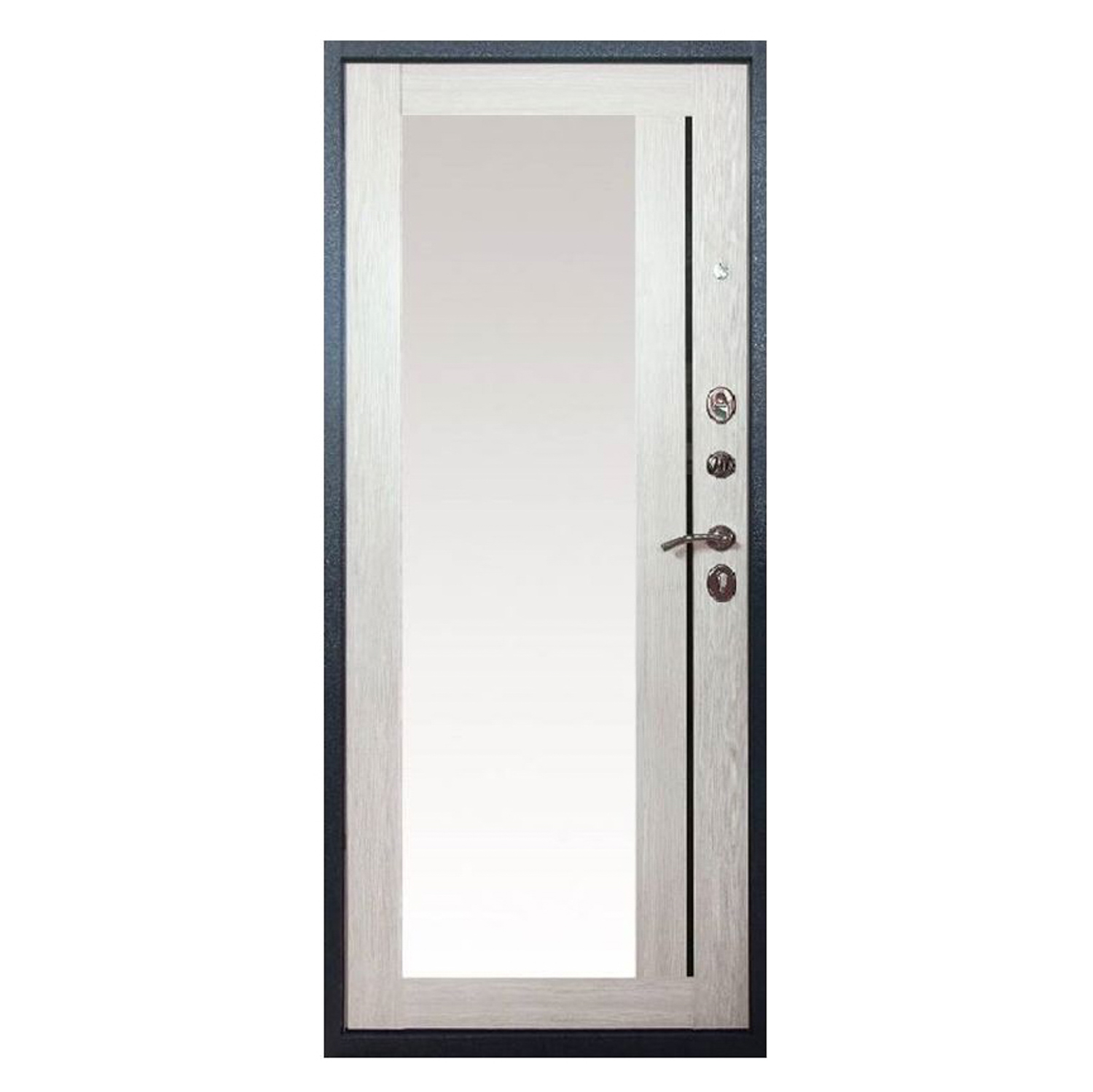Дверь входная ПРОМЕТ Титан, 860х2050х70 мм, с зеркалом, правая, графит/лиственница беленая