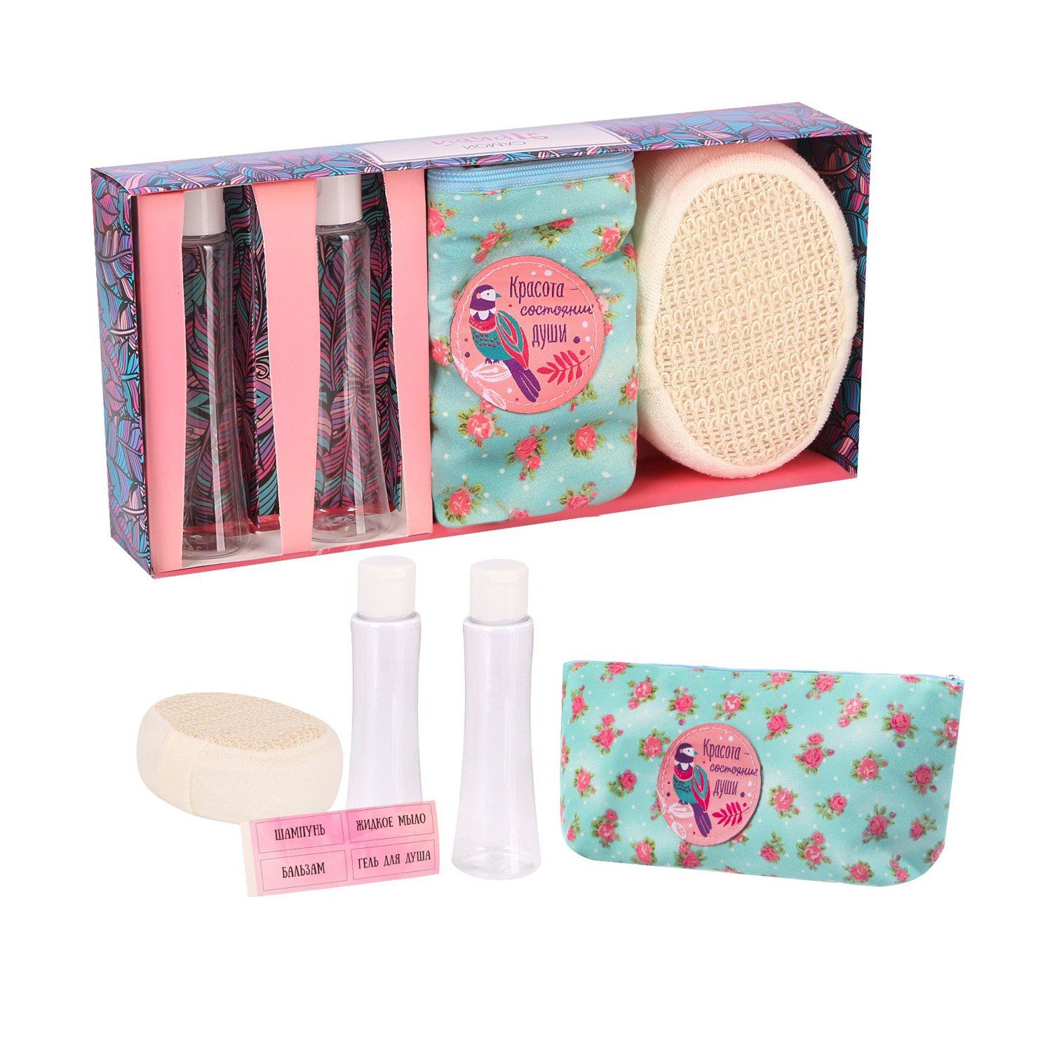 яяяНабор косметичка+мочалка+2 бутылочки "Самой яркой и талантливой" 2494989