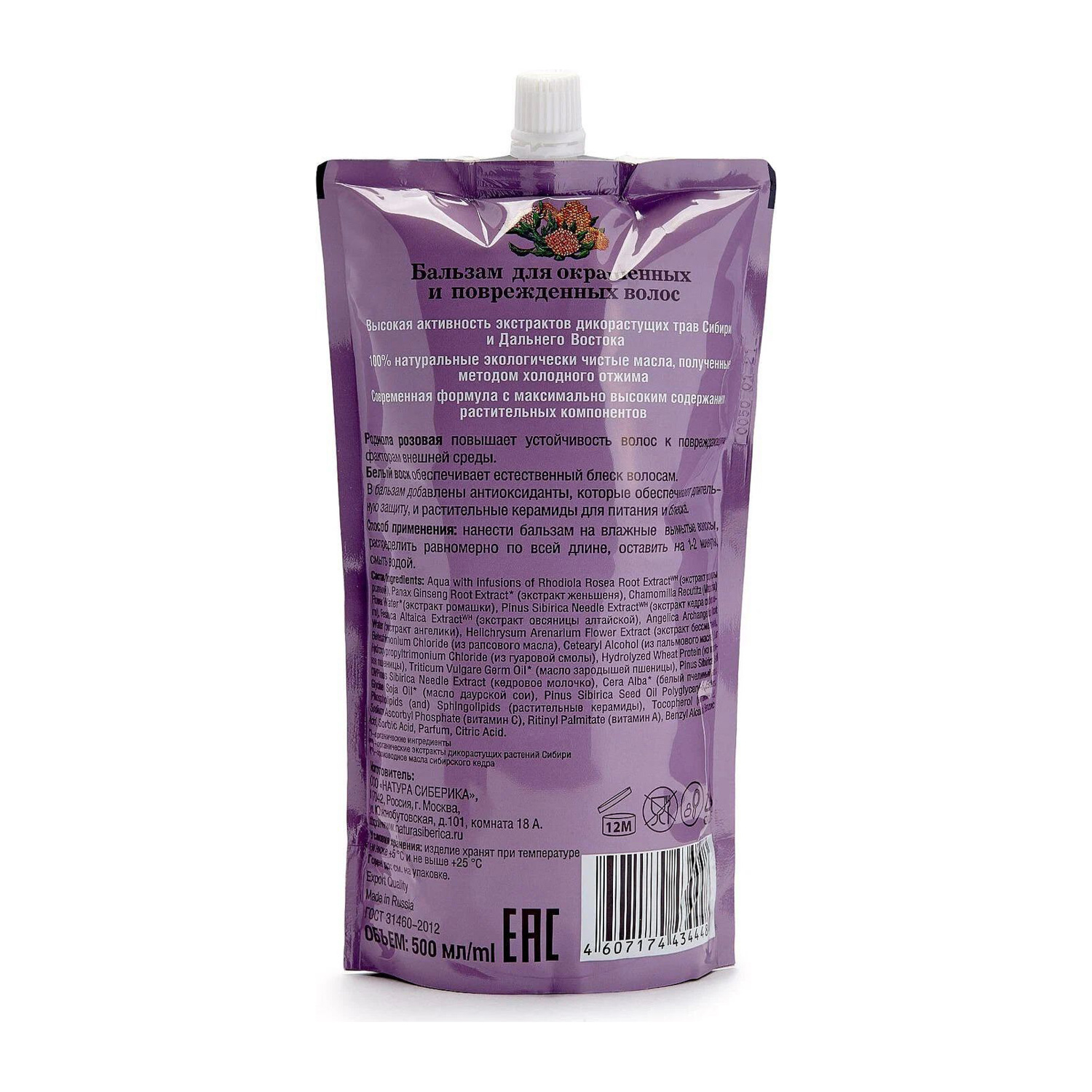 яяяБальзам Natura Siberica для окрашенных и поврежденных волос Защита и блеск 500мл (дой-пак) *1/12