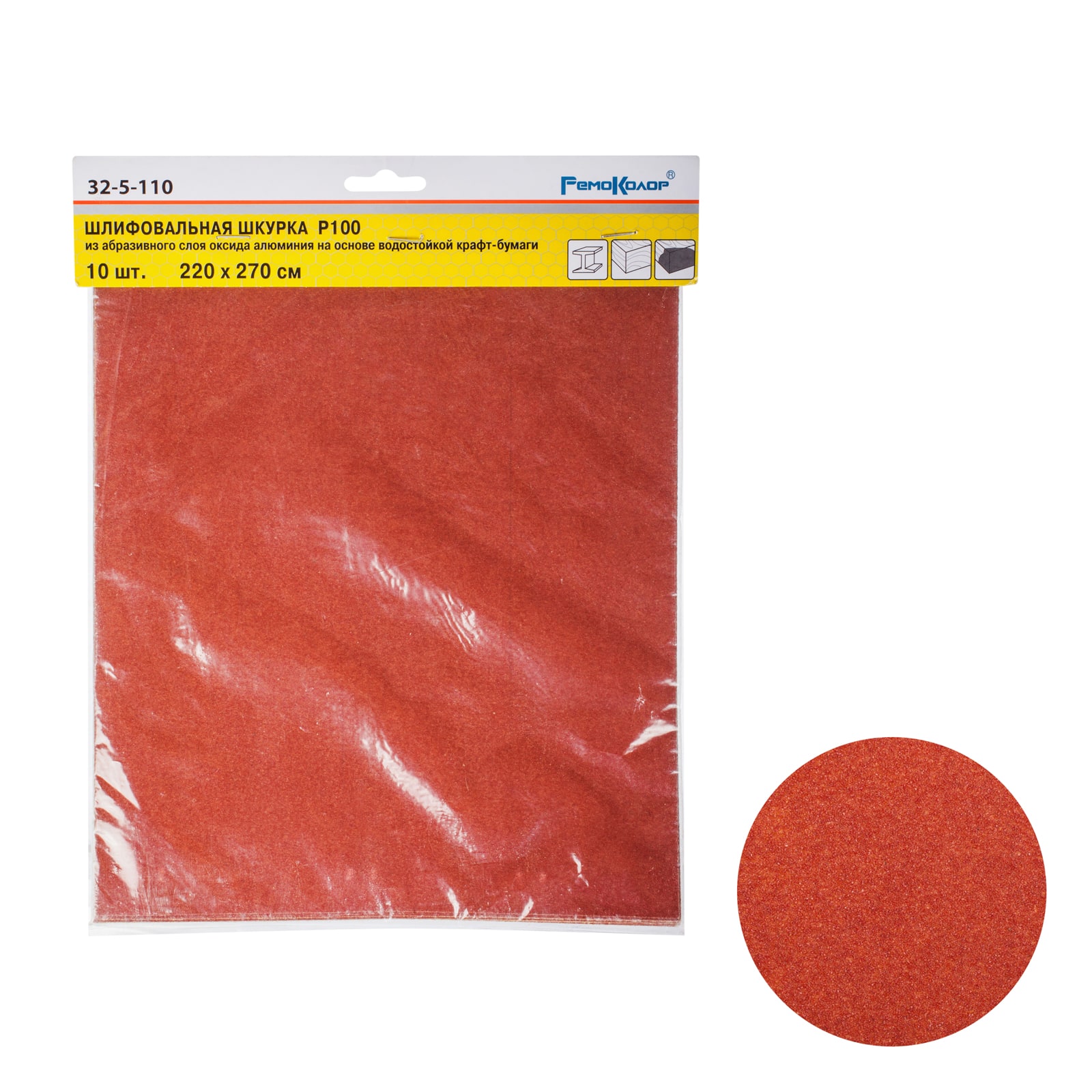 Шлифшкурка 220*270 зерно 100 оксид алюминия водостойкая бумажная (10шт)арт.32-5-110 Ремоколор*1/80