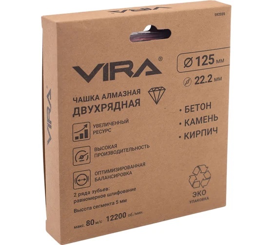 Чашка алмазная шлифовальная 125*22,20мм бетон/камень/кирпич двухрядная арт.592035 VIRA *1/20/40