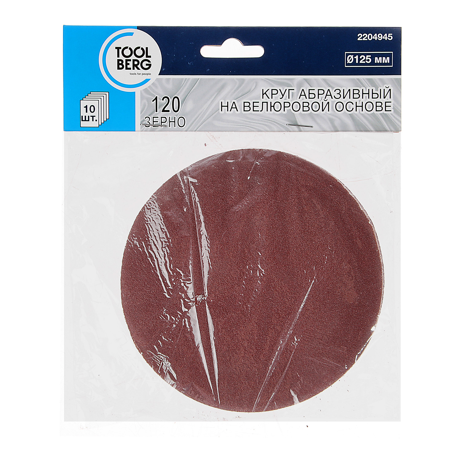 Круг шлифовальный на липучке 125мм Р120 без отверстий (10шт) арт.2204945 TOOLBERG *1/100