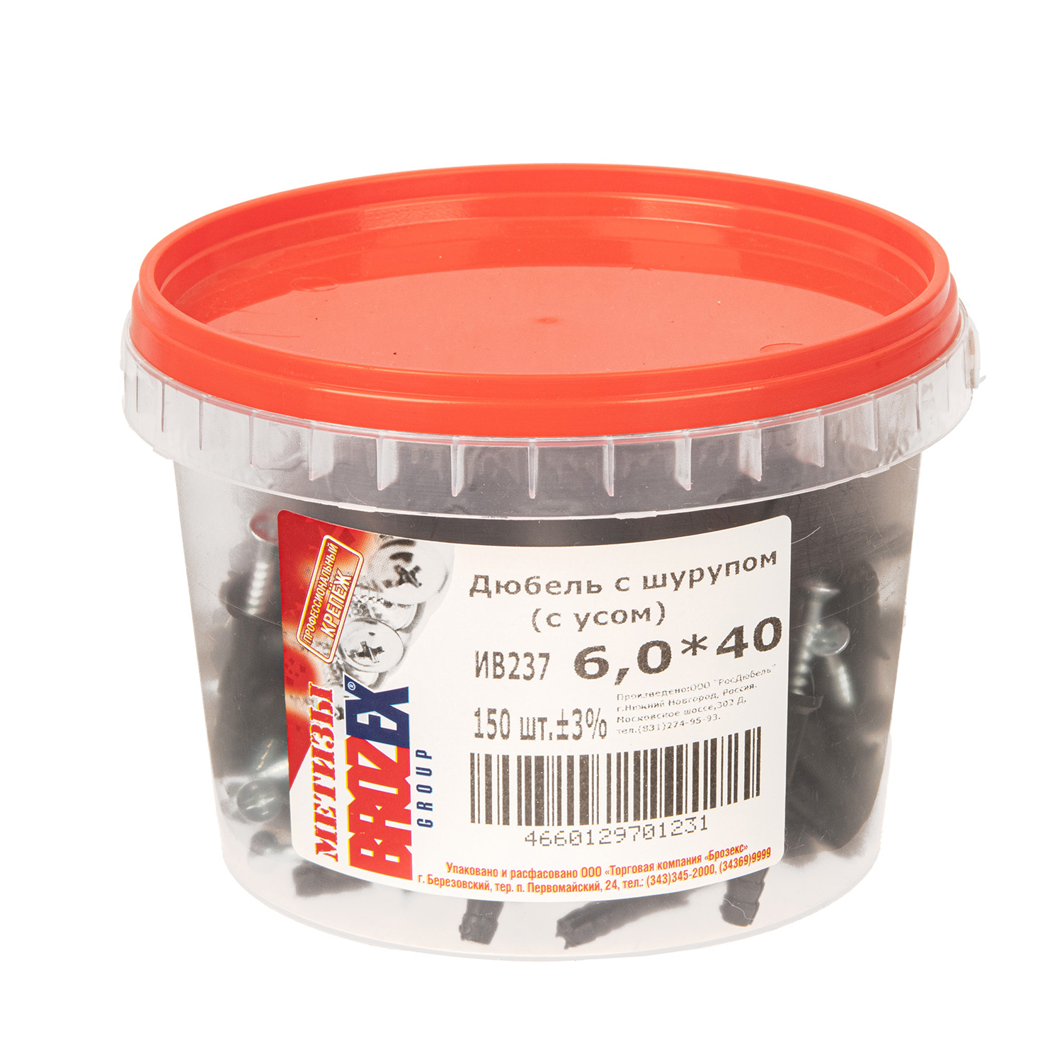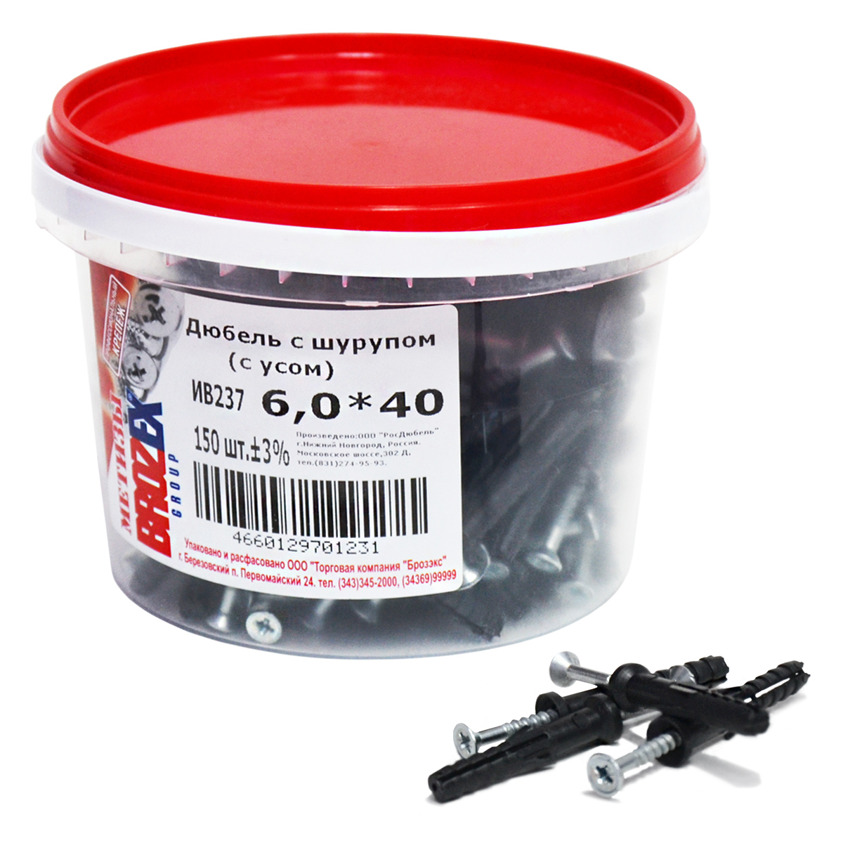 Дюбель с шурупом 6х40 мм BROZEX, с усом, оцинкованная сталь, 150 шт.