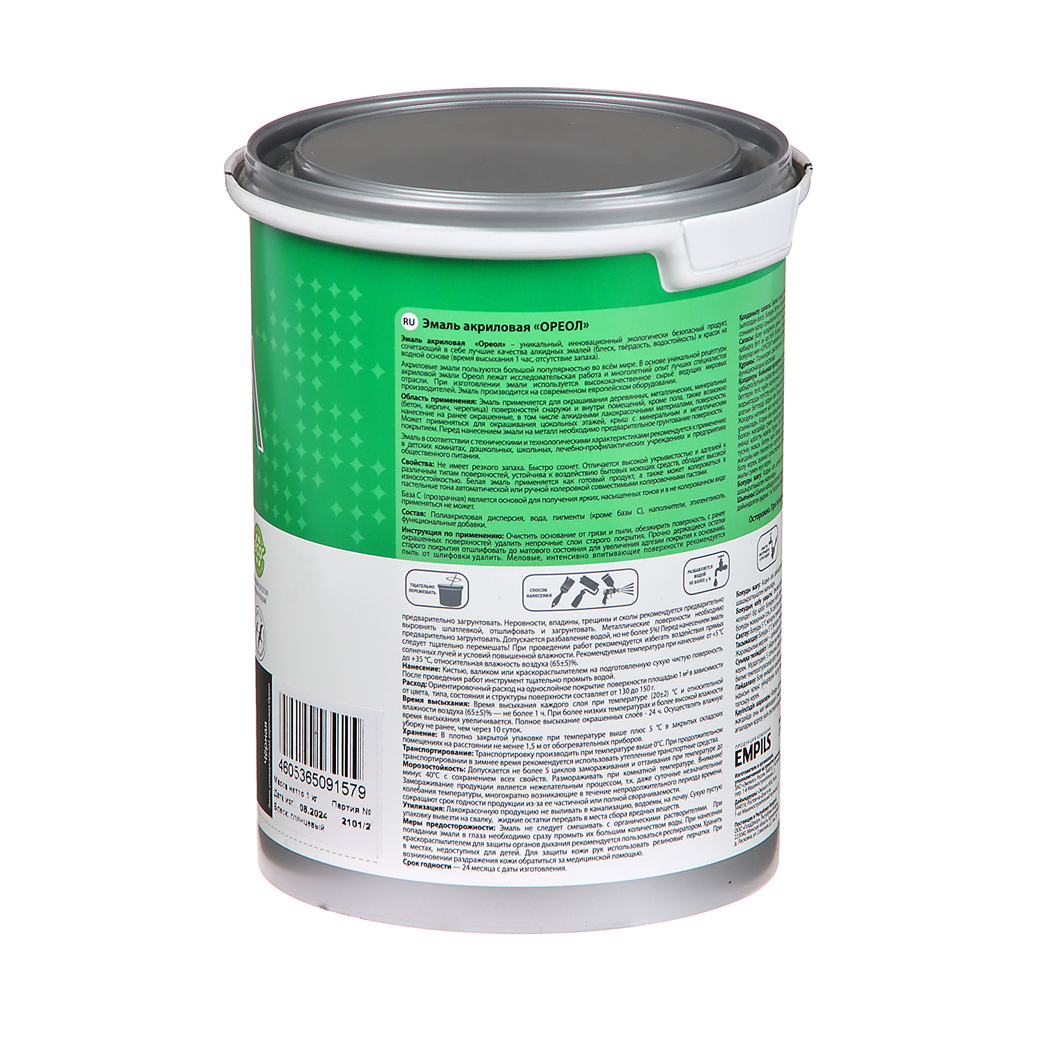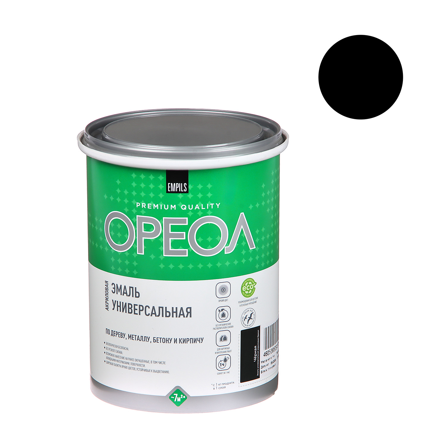 Эмаль акриловая черная 1 кг Ореол *1/6/336