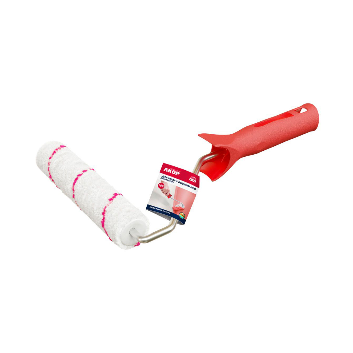 Валик-миди 120мм в сборе д/работ с водными ЛКМ,d-25мм,ворс9мм,ручка30см,полиэстр (Акор) *1/45