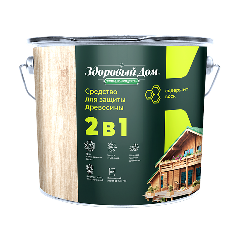 Деревозащитное средство Здоровый дом 2 в 1 дуб 9 л представляет собой высокоэффективное покрытие для декоративной отделки древесины и защиты поверхностей на срок до 8 лет. Формула 2 в 1 позволяет наносить состав без предварительного использования грунта.
