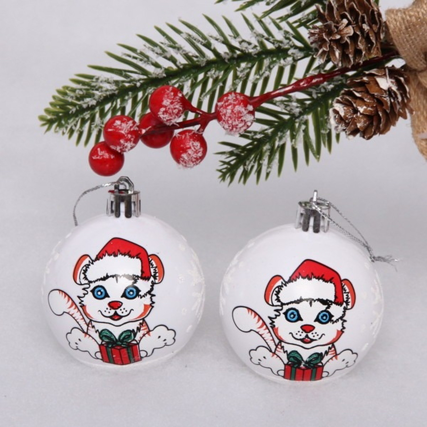 Новогодние шары "Тигрёнок" 6 см (набор 2шт), белый