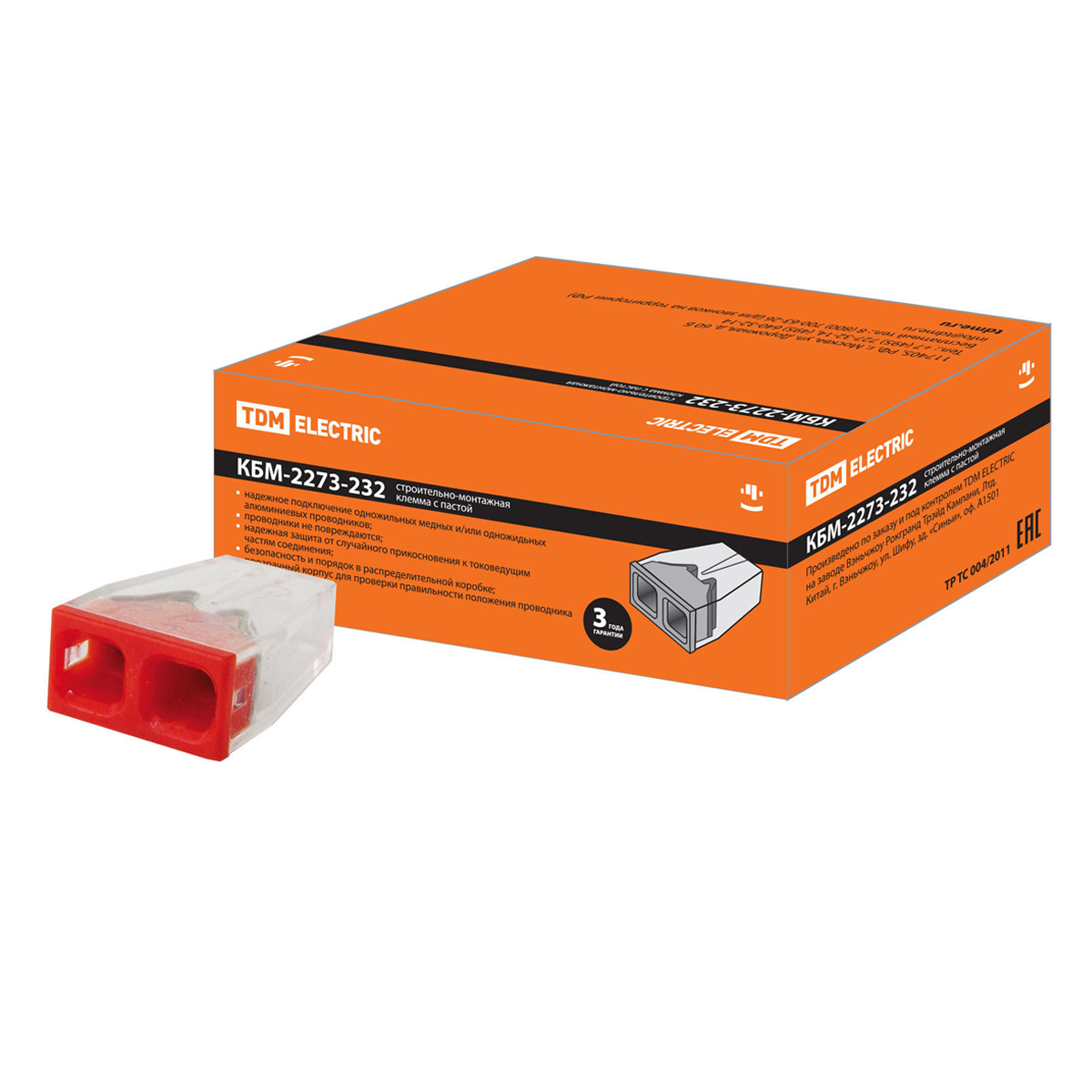 Клемма строительно-монтажная КБМ-2273-232 (2,5мм2) с пастой (2 конт.) TDM SQ0517-0111 *10/250