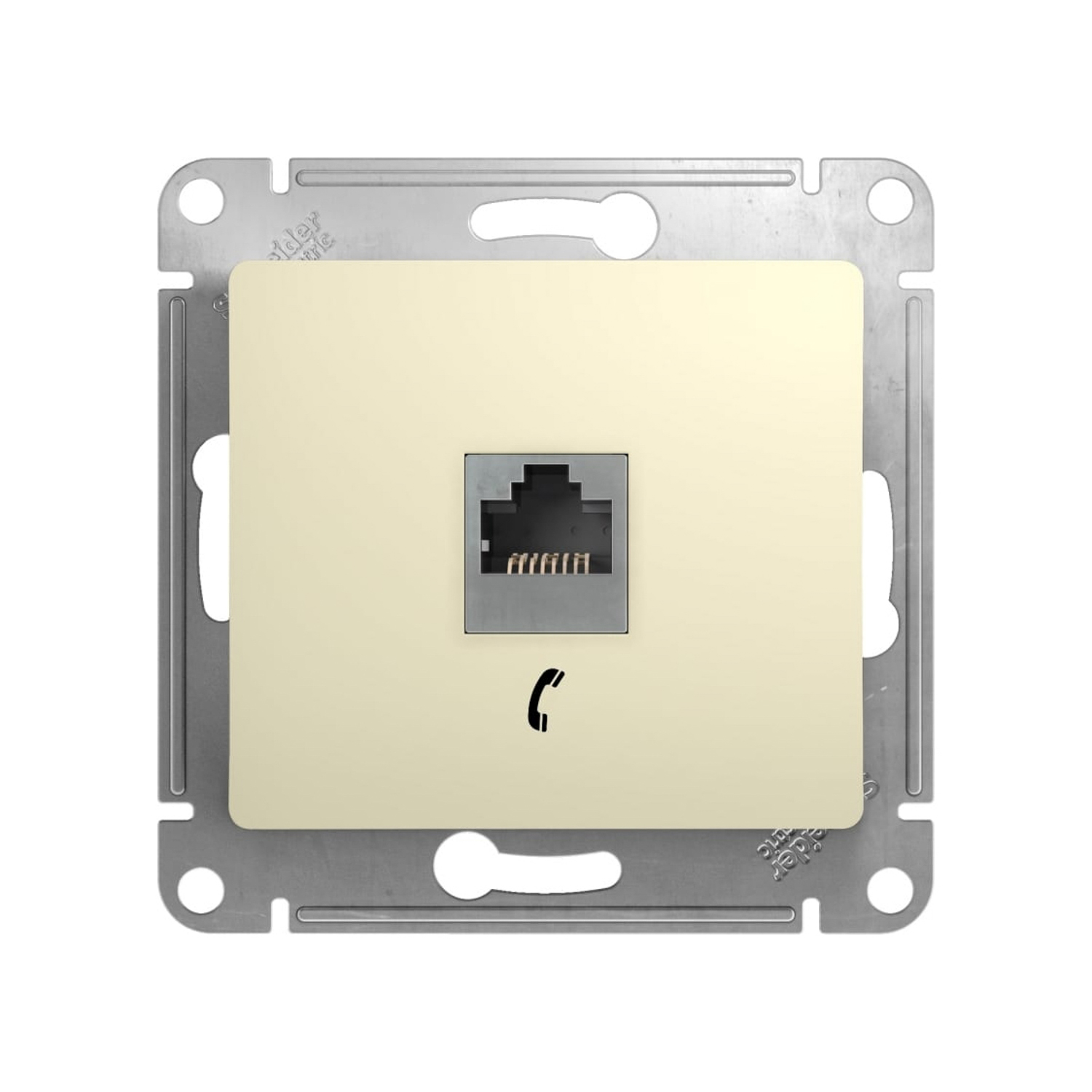 яяяМеханизм розетки "Glossa" 1-м. телеф. RJ11 беж. GSL000281Т *1