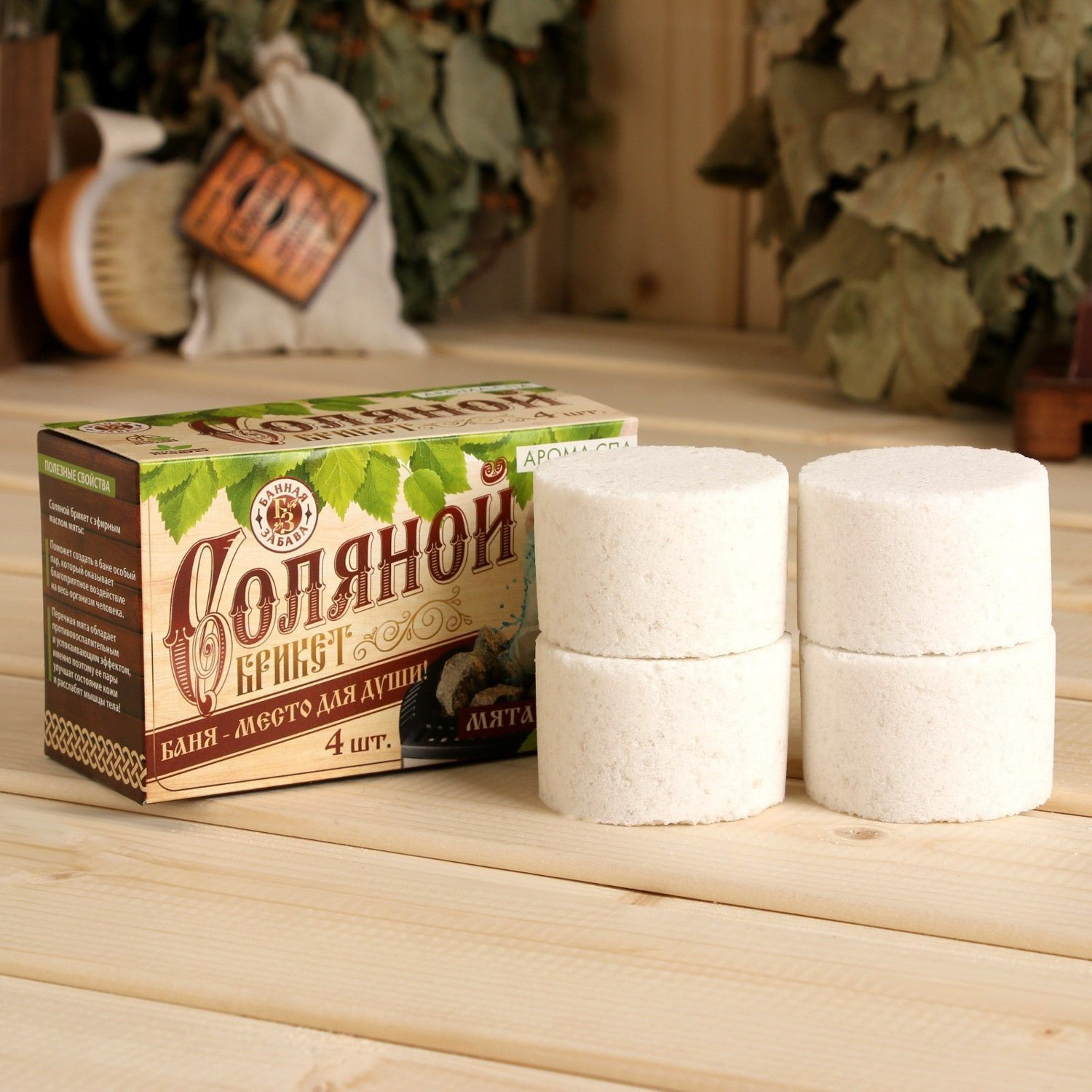 Соляной брикет "Баня - место для души", мята 3685036