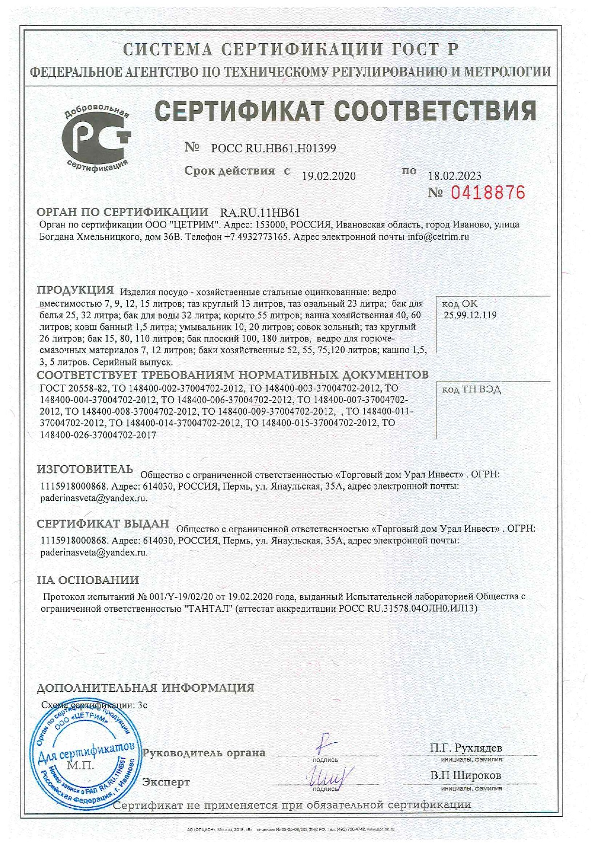 Ведро оцинкованное объемом 9 литров производится по ГОСТ 20558-82. Ведро изготавливается из тонколистового оцинкованного проката и предназначено для нужд народного хозяйства, хранения и переноски холодной воды и ГСМ. Ведро оцинкованное не предназначено для хранения и транспортирования пищевых продуктов.
