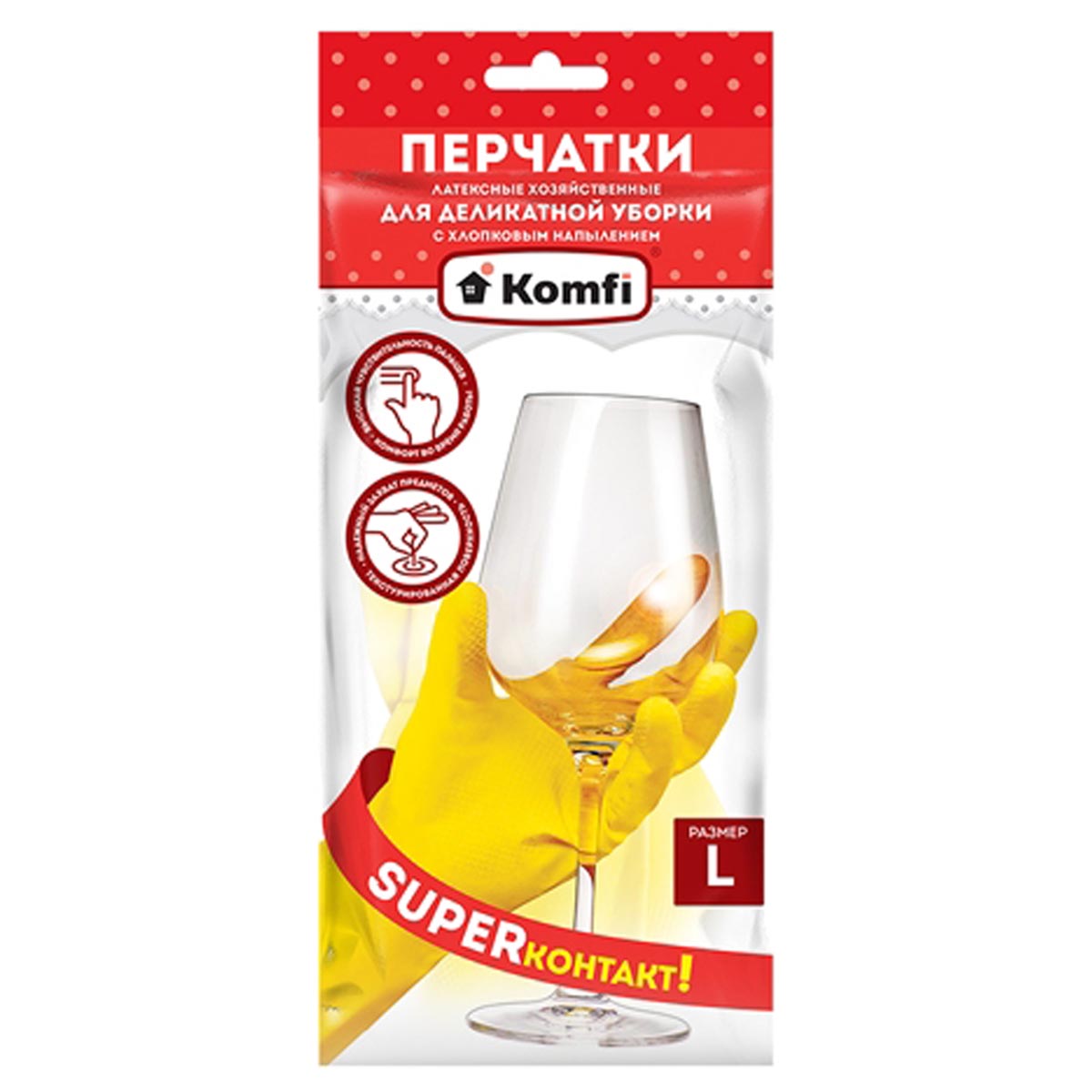 Перчатки латексные с хлопк.напыл."Делик.уборка" Прочные L(большой) 1пара DGL018L "Komfi"*12/240