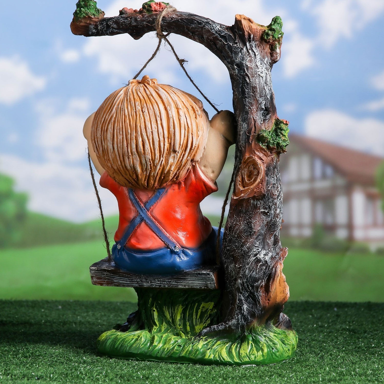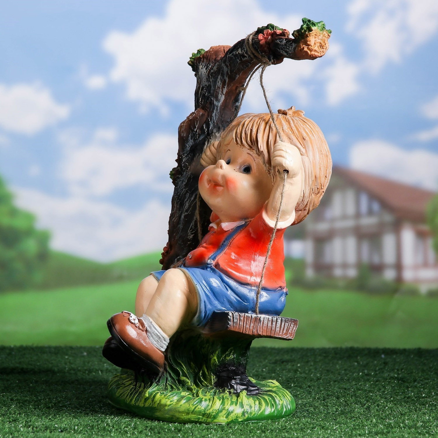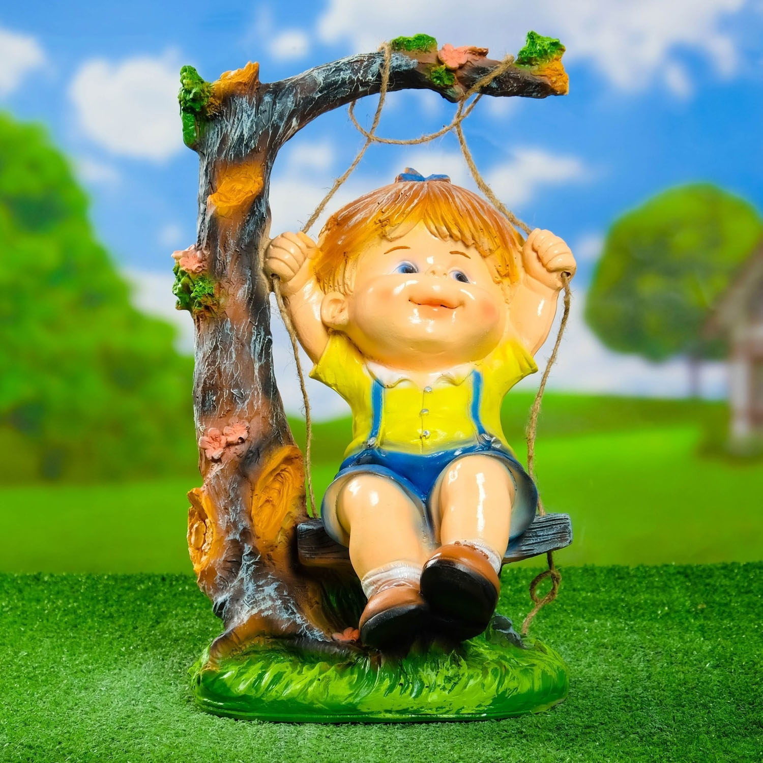 Садовая фигура "Мальчик на качелях" 44см 4074850