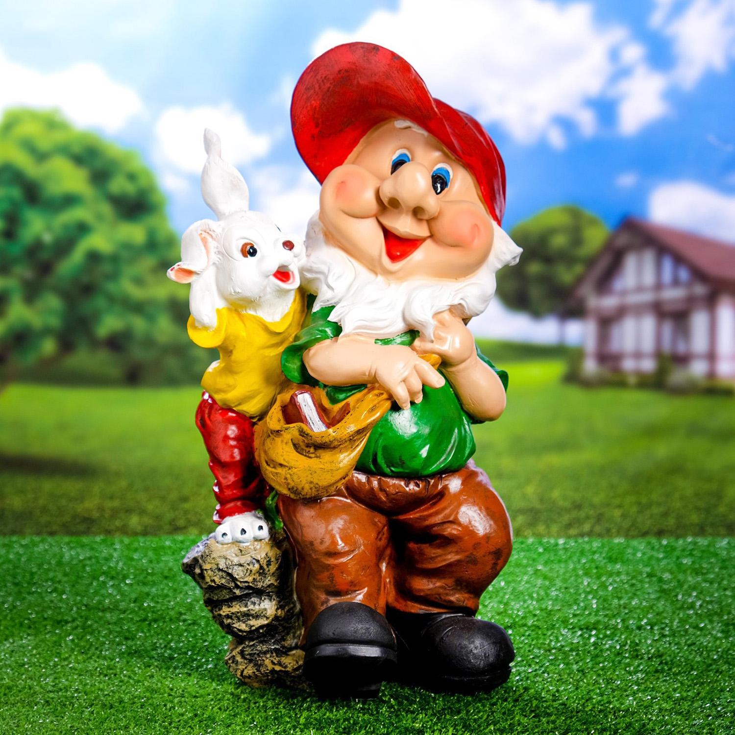 Садовая фигура "Гном с зайцем" 28x49см 7025692