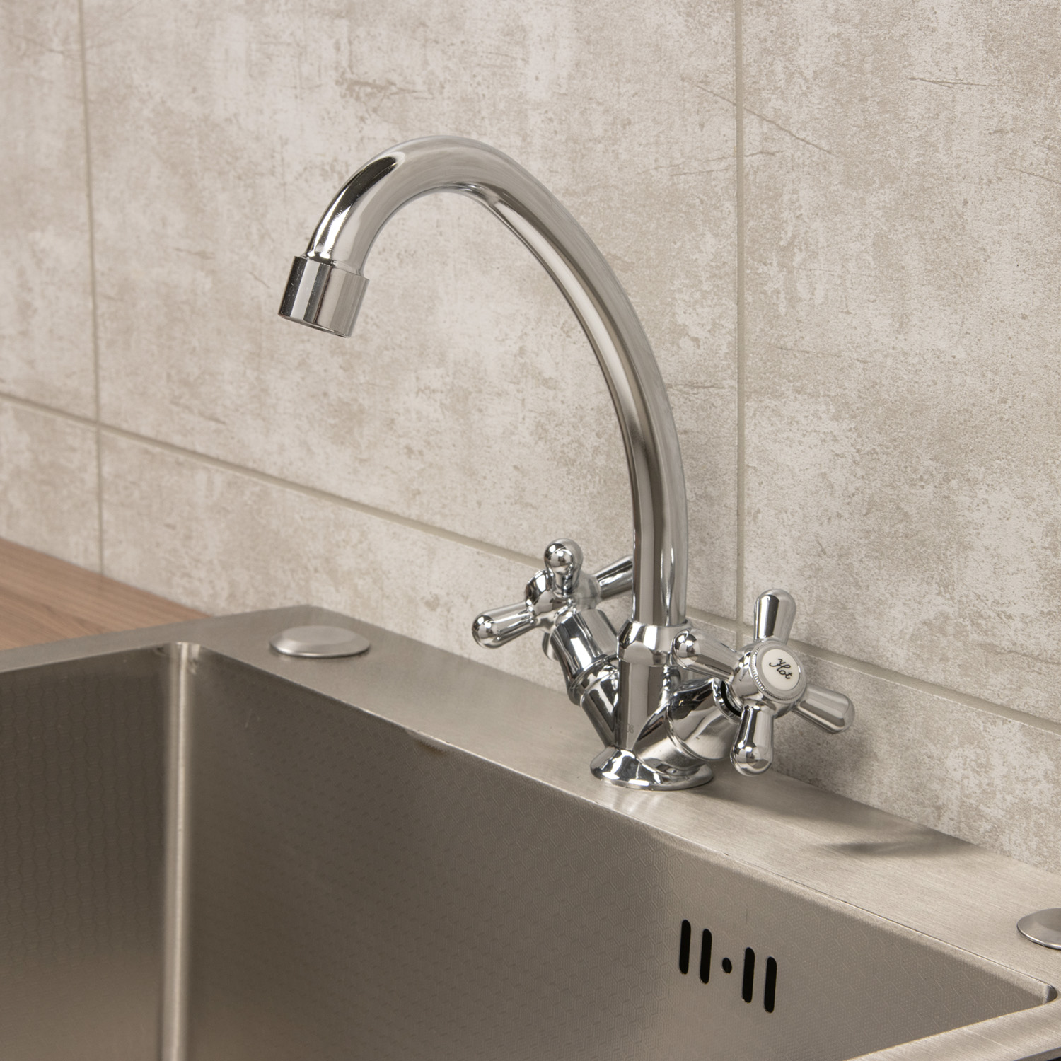 Смеситель для кухни Roegen RP021A, высокий излив, двухвентильный