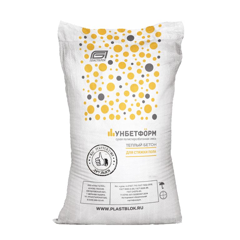 По стандарту минимальная толщина покрытия для УНБЕТФОРМА — 5 см. В этом случае на 1 квадратный метр будет уходить 1 мешок сухой смеси. Если на полу в вашем помещении есть сильные перепады высот, то при расчете смеси учитывайте их или берите стяжку с 5−10% запасом.