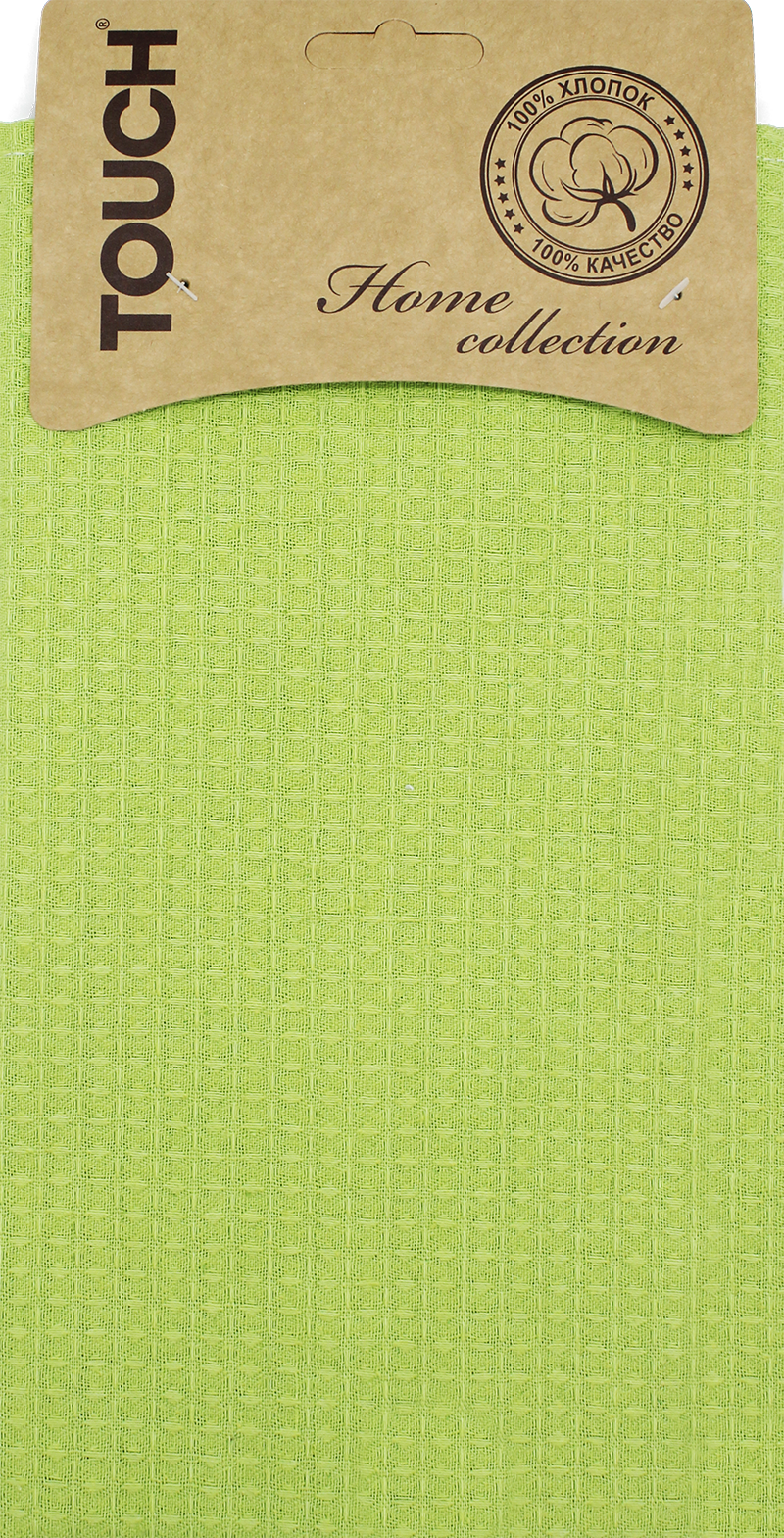 Полотенце вафельное 35*55см на хангере Крупная клетка зеленый 220г/м2 Touch *6