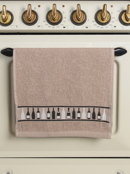 Полотенце махровое 30*60см Wine bottles бежевый 400гр/м2 Casa Conforte *10