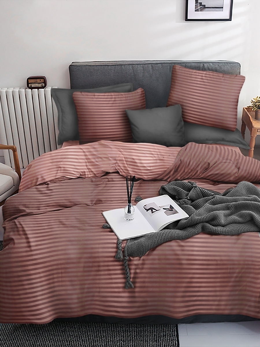 Постельное белье 2сп бязь Павлайн Страйп Коттон коричневый *1
