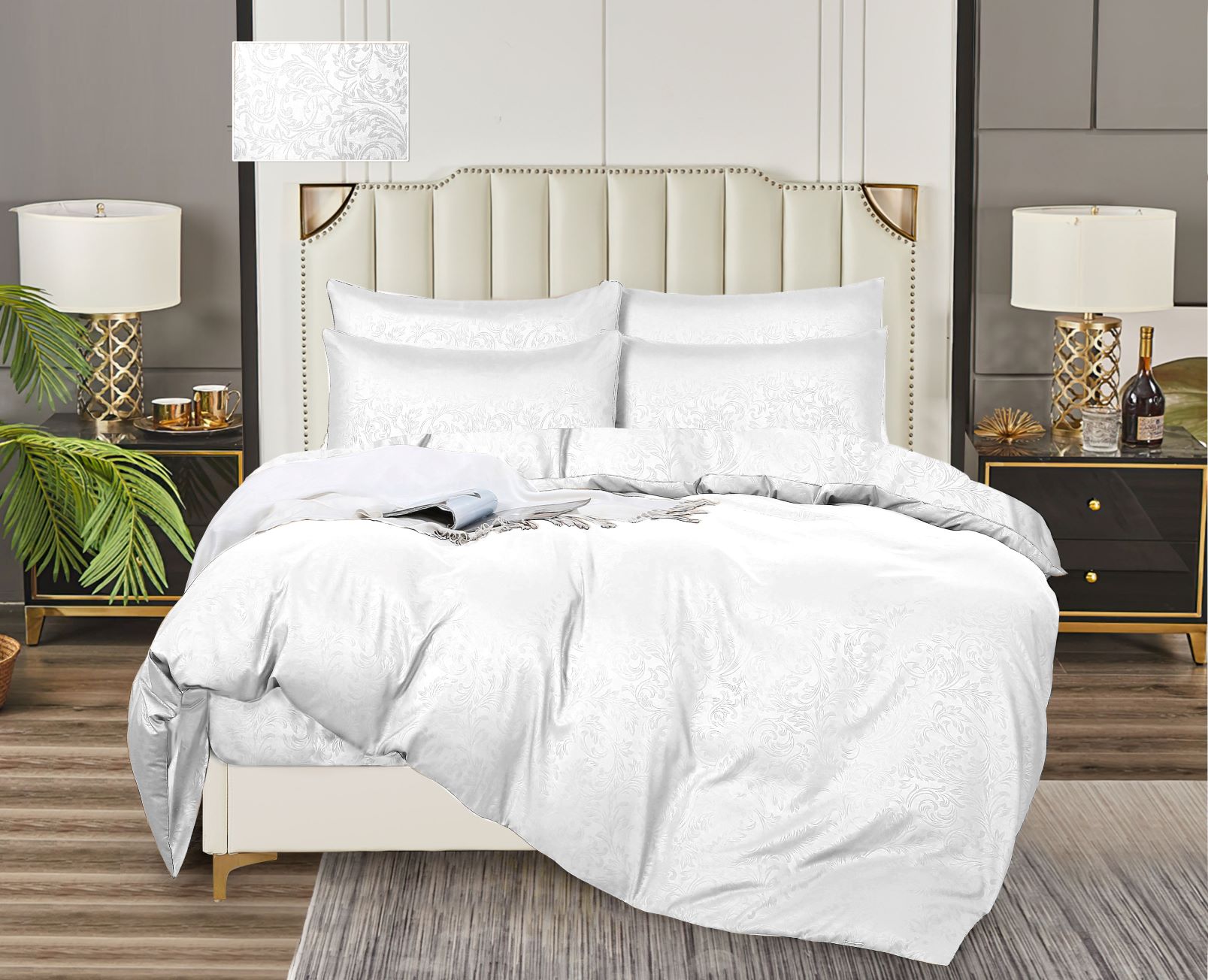 Постельное белье евро бамбук жаккрад Орхидея белый, наволочки 70*70см - 2шт *1