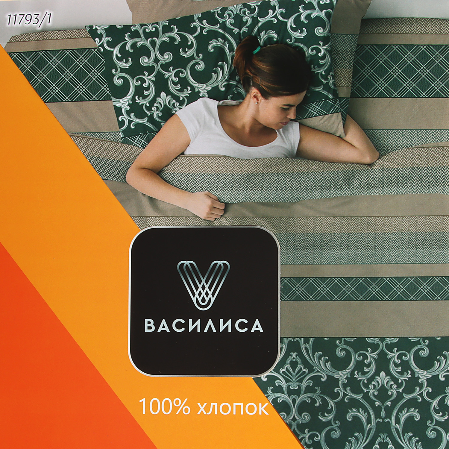 Постельное белье евро бязь Василиса 11793/1 Изумруд нав70*70,пр200*220 *1/5