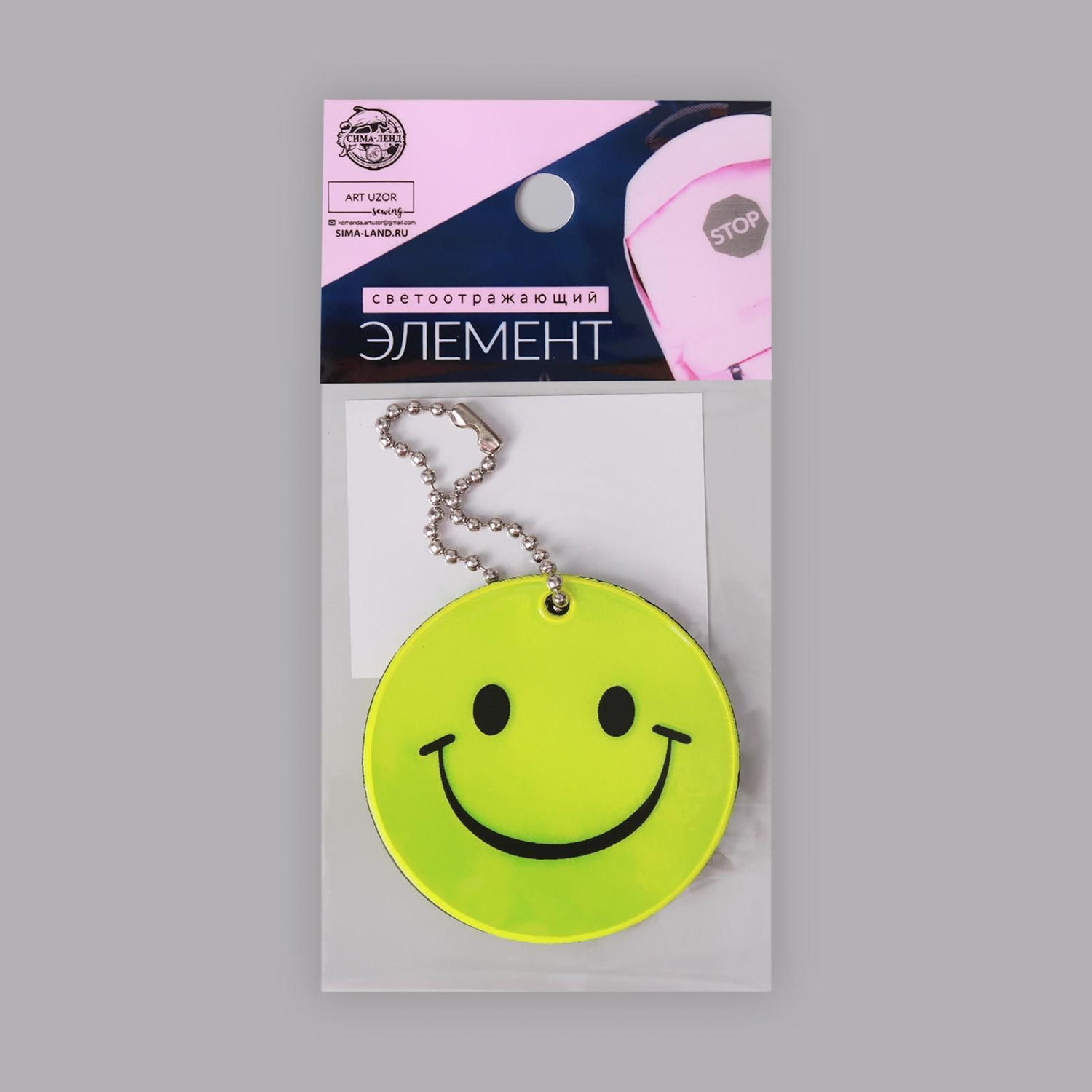 Светоотражающий элемент двусторонний смайлик d5,3см цепочка жёлтый АУ 3566298