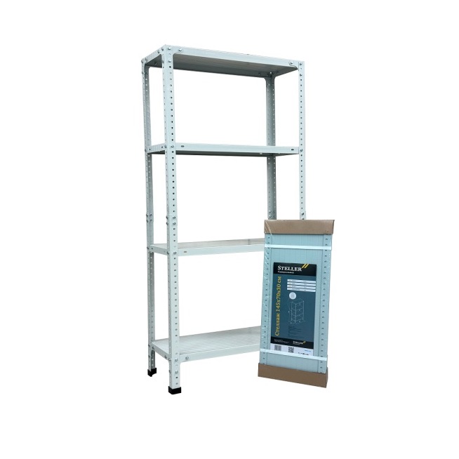 Стеллаж металл. "Steller" выс.1,45м, шир.0,7м, гл.0,3м, 4полки (мах нагр.на полку 100кг), Серый *1