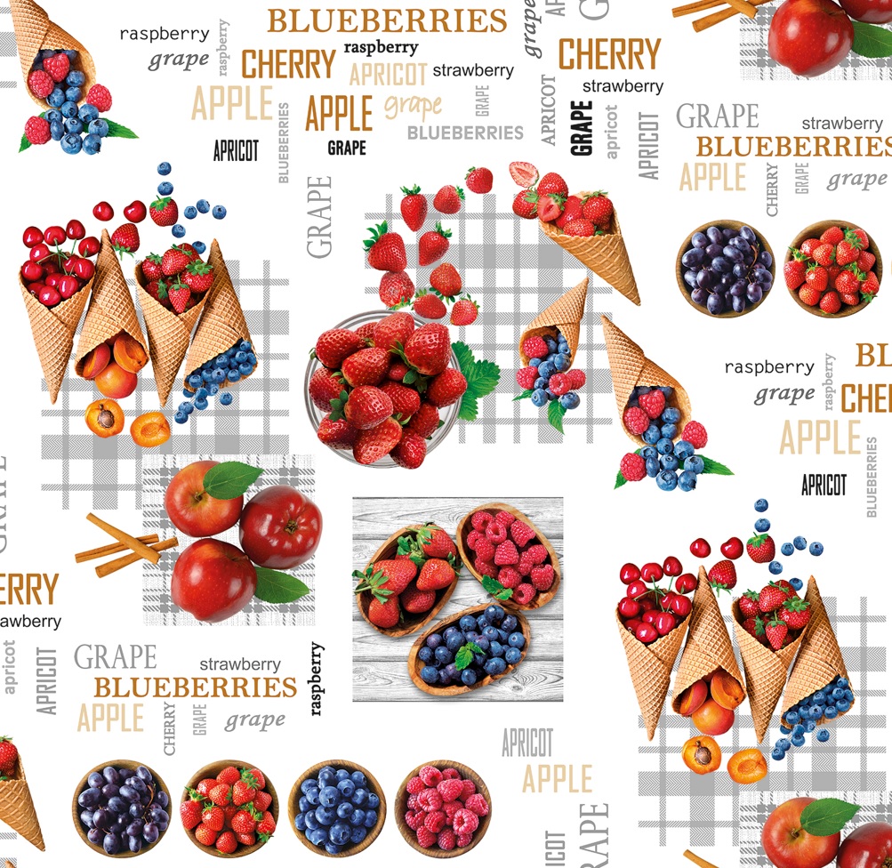 Клеёнка на нетканой основе "Мажор" "Ягоды и яблоки" на белом шир.1,35м 598/0 "Колорит" *20