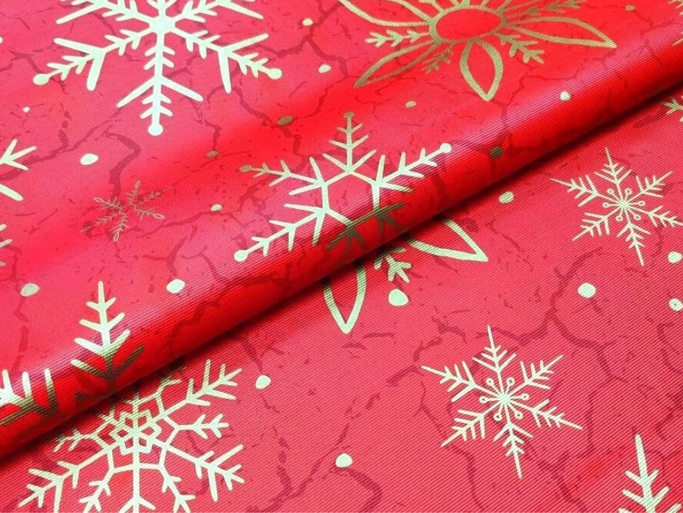 Клеёнка на тканевой основе "Print" "Снежинки золотые" красный фон шир.1,37м GW-21771 "Great Way" *20