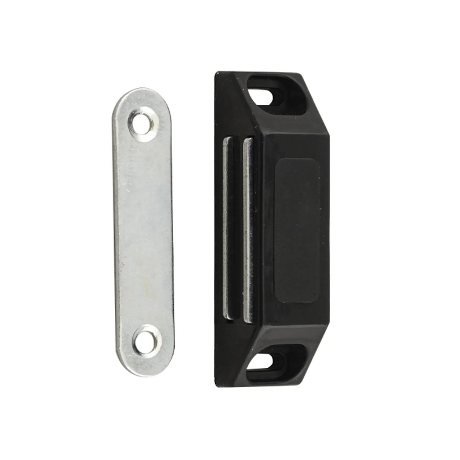 Магнитная защелка - это вид мебельной фурнитуры, который используется для фиксирования мебельных створок в закрытом положении. Работает за счет притяжения магнитных вставок в основании защелки и ответной части.Корпус защелки выполнен из пластика, покрытие - краска.