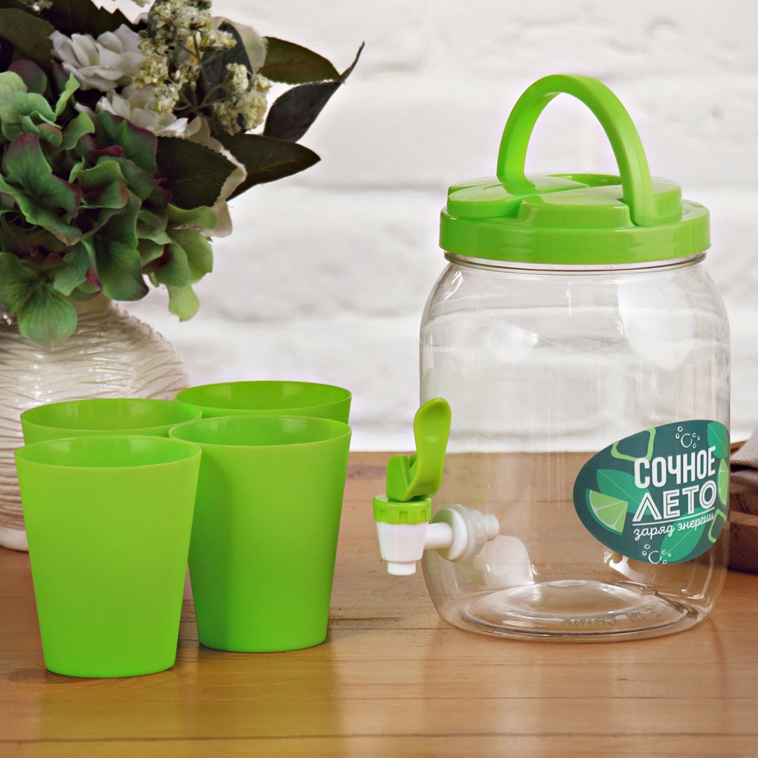 яяяНабор "Сочное лето", бочка для лимонада, 4 стакана 4135226
