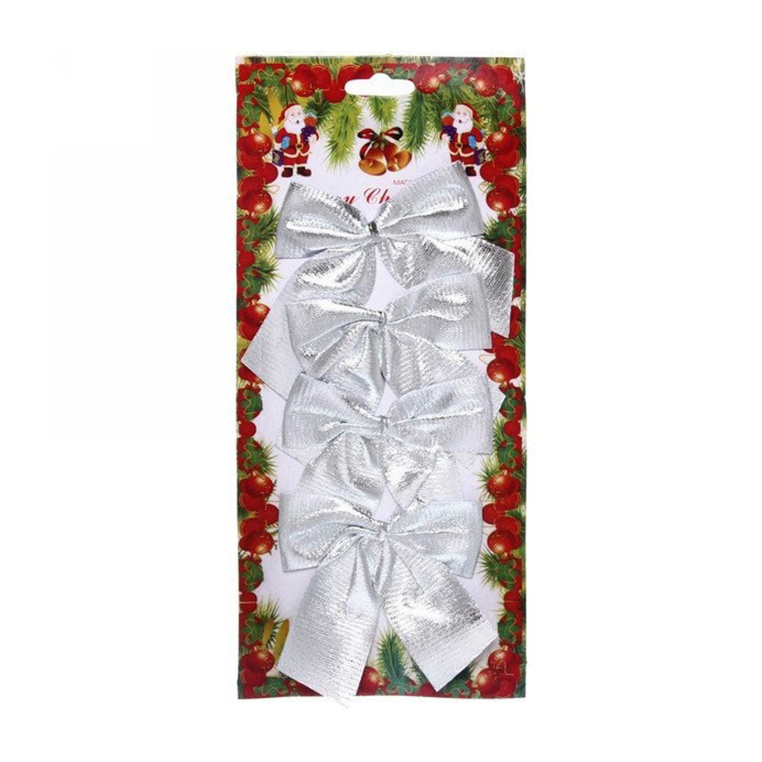 Набор бантов на елку Серпантин «Серебряный шик», 9х7 см, 6 шт., серебро