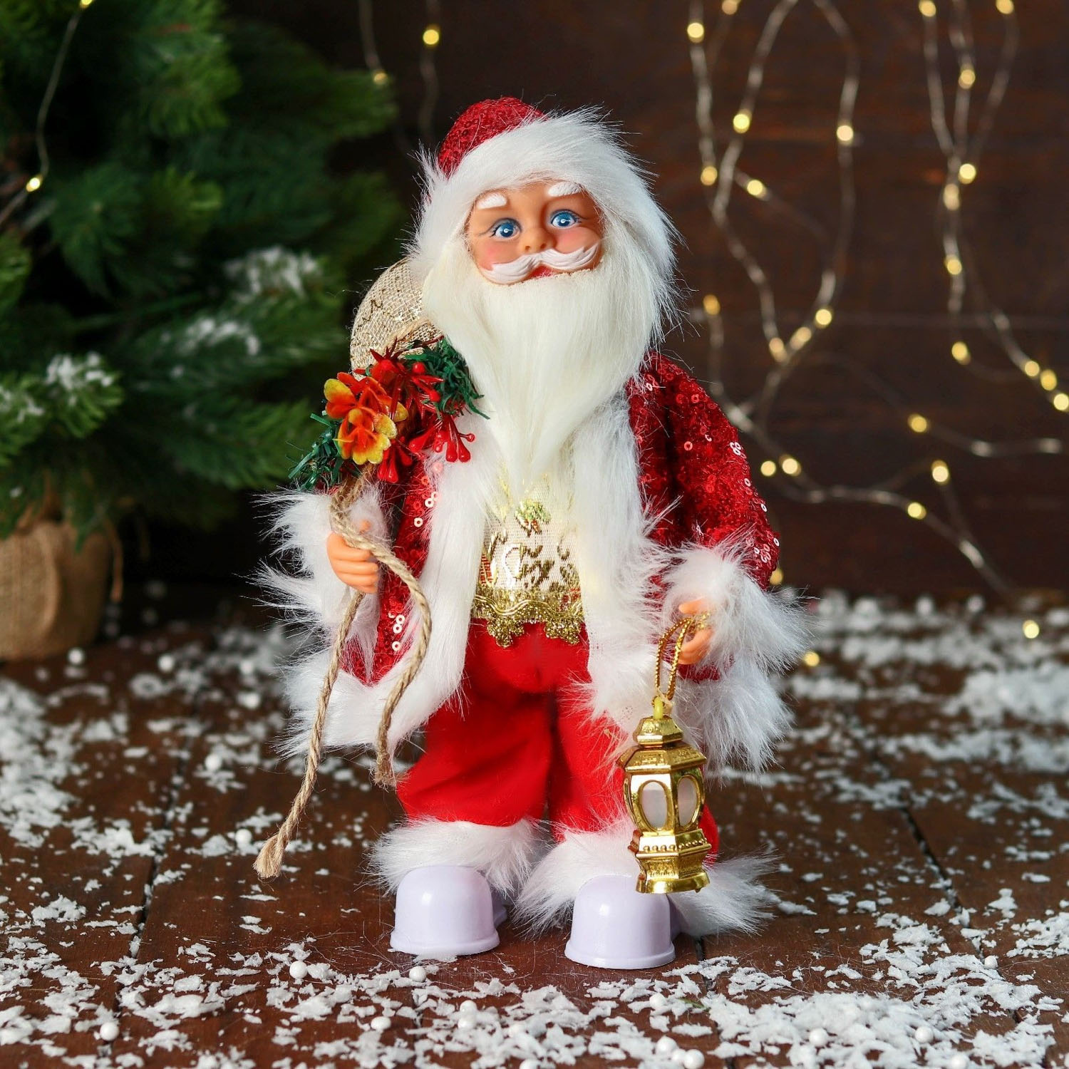 Дед Мороз "В костюме с пайетками, с фонариком" двигается, с подсветкой, 28 см, красный 9692506