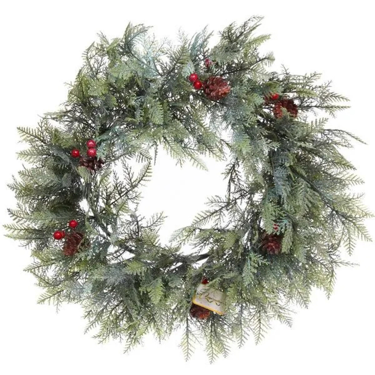 Венок хвойный "Искрящиеся ветви" d-50 см, литой ПВХ, шишки, ягоды
