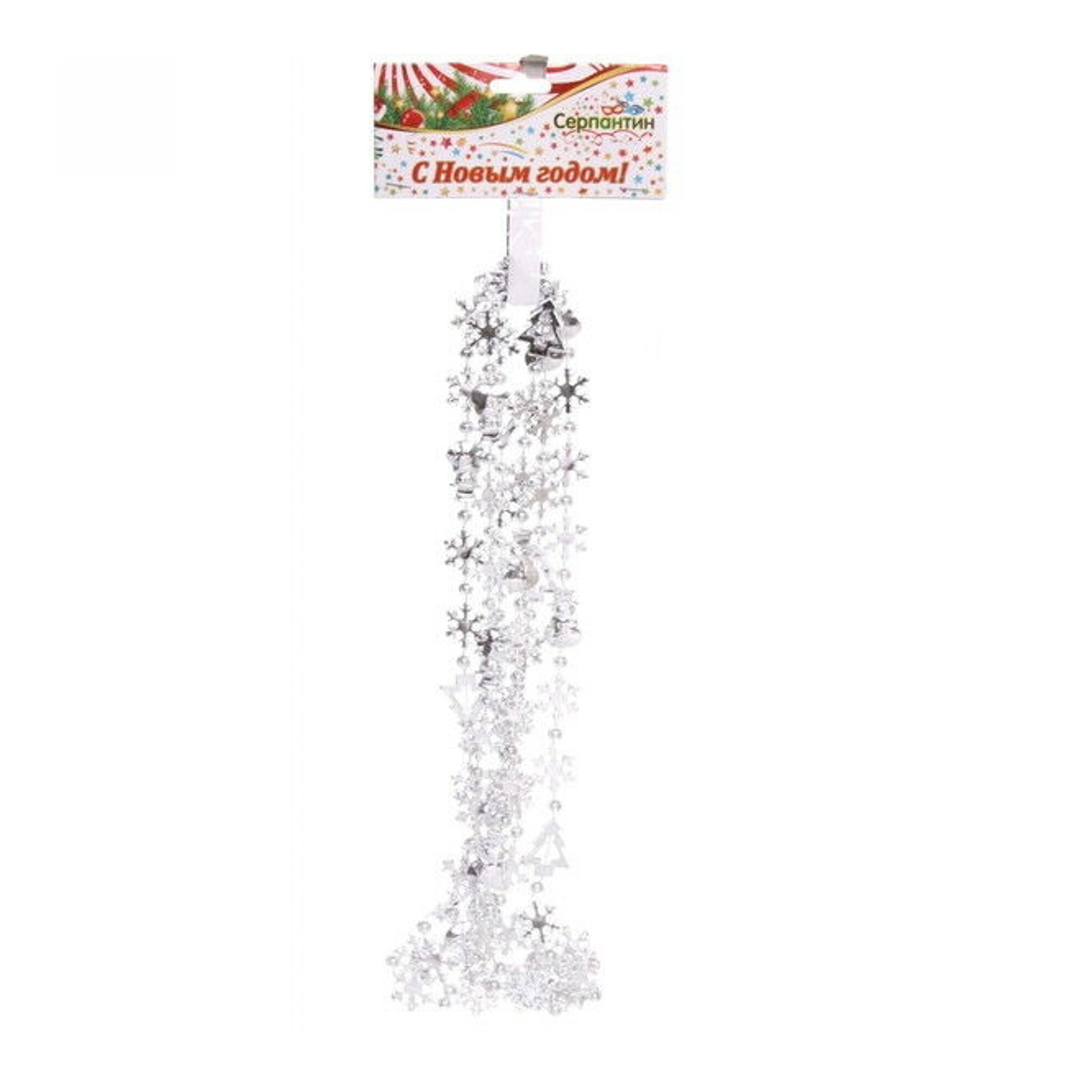 Бусы на елку Серпантин «Новый год», 200 см, серебро