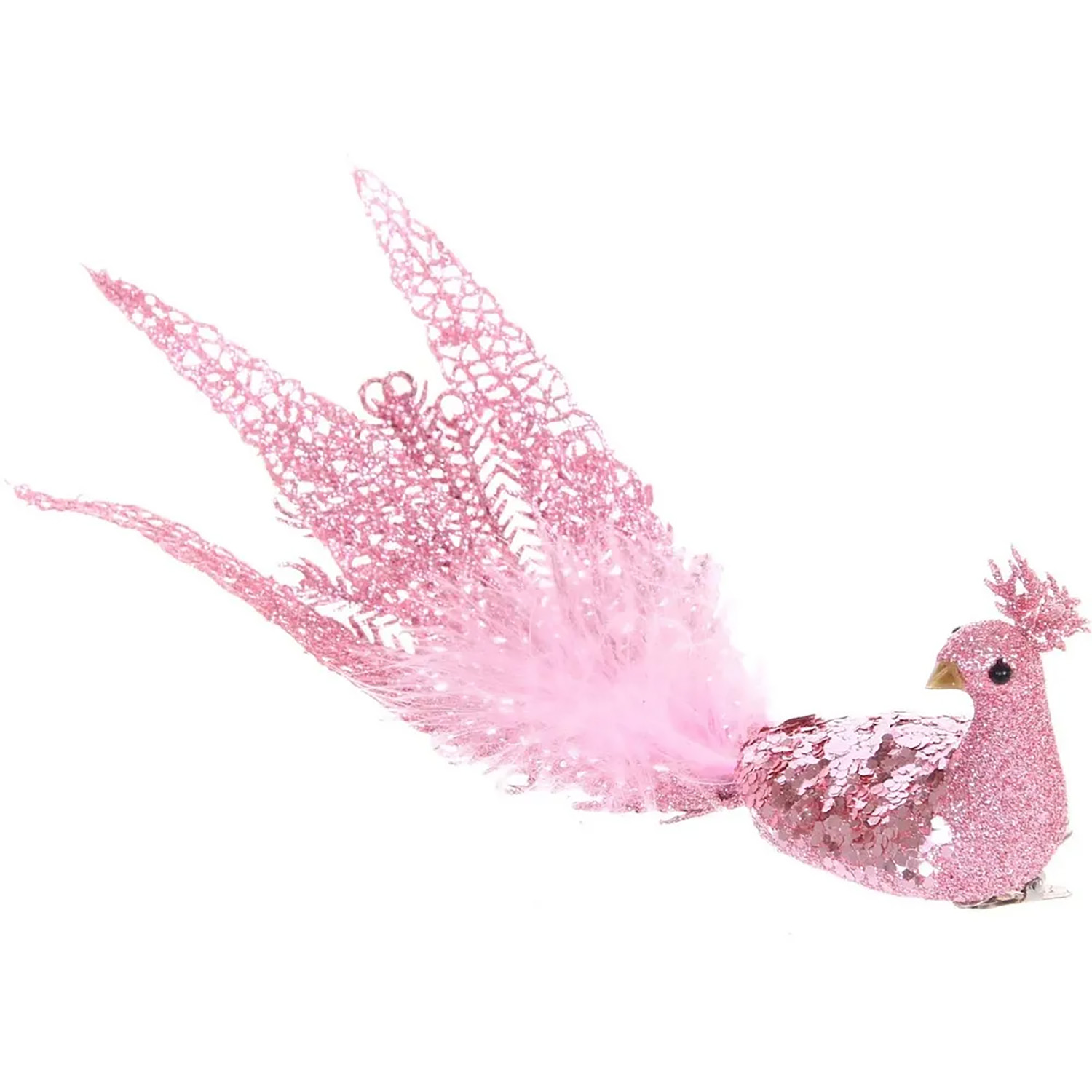 Новогоднее украшение "Волшебный павлин" 26*9,5*8 см (на прищепке), Розовый