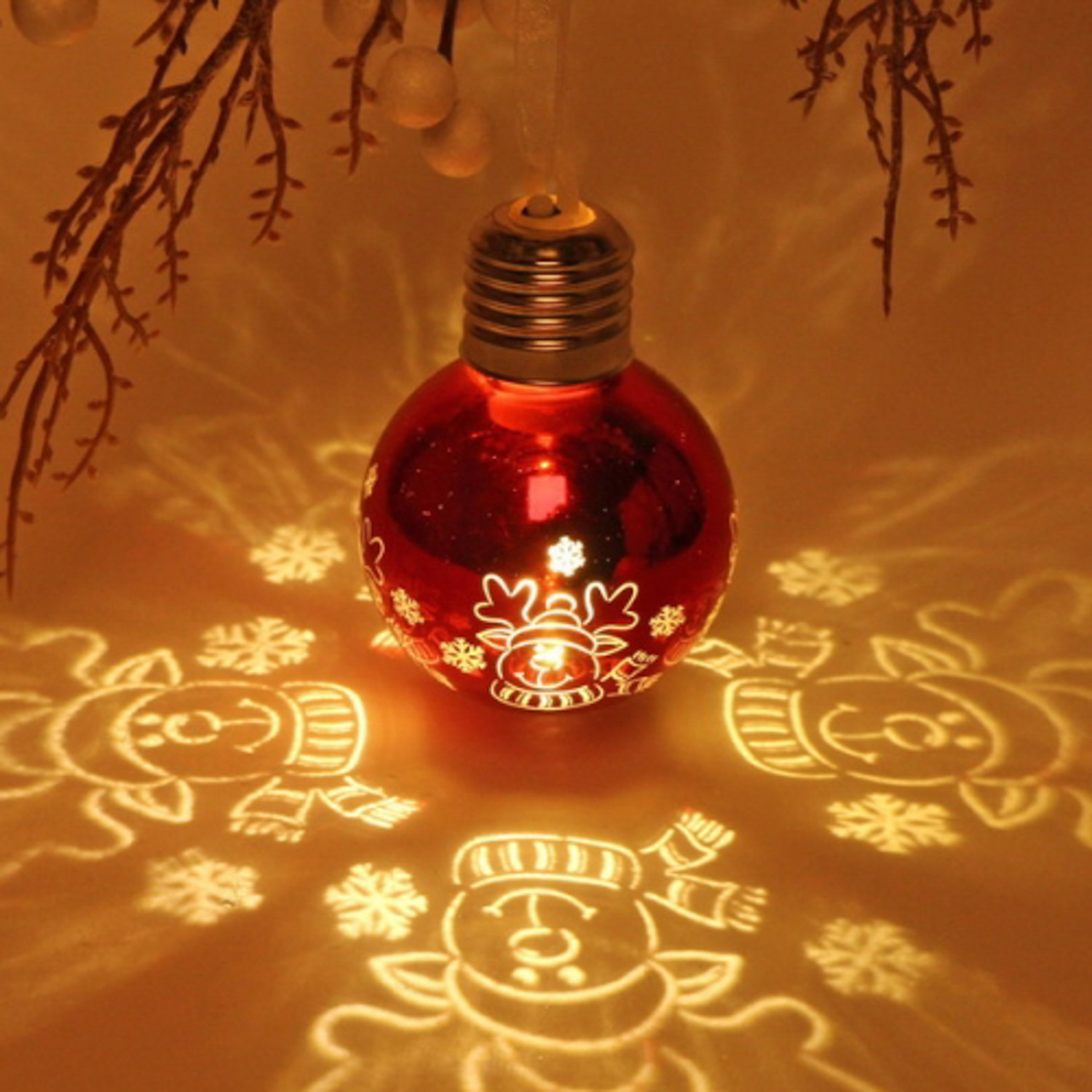 Подвеска ЛАМПА с подсветкой 6 см "Снеговичок", Красный (подсветка Теплый белый)