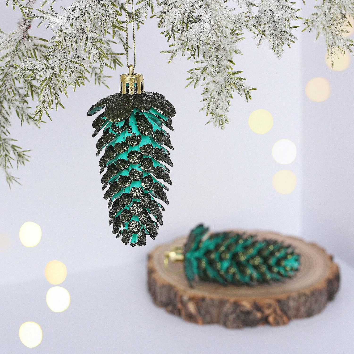 Ёлочные игрушки "Таинственное очарование" Шишки 9 см (набор 2шт), изумруд