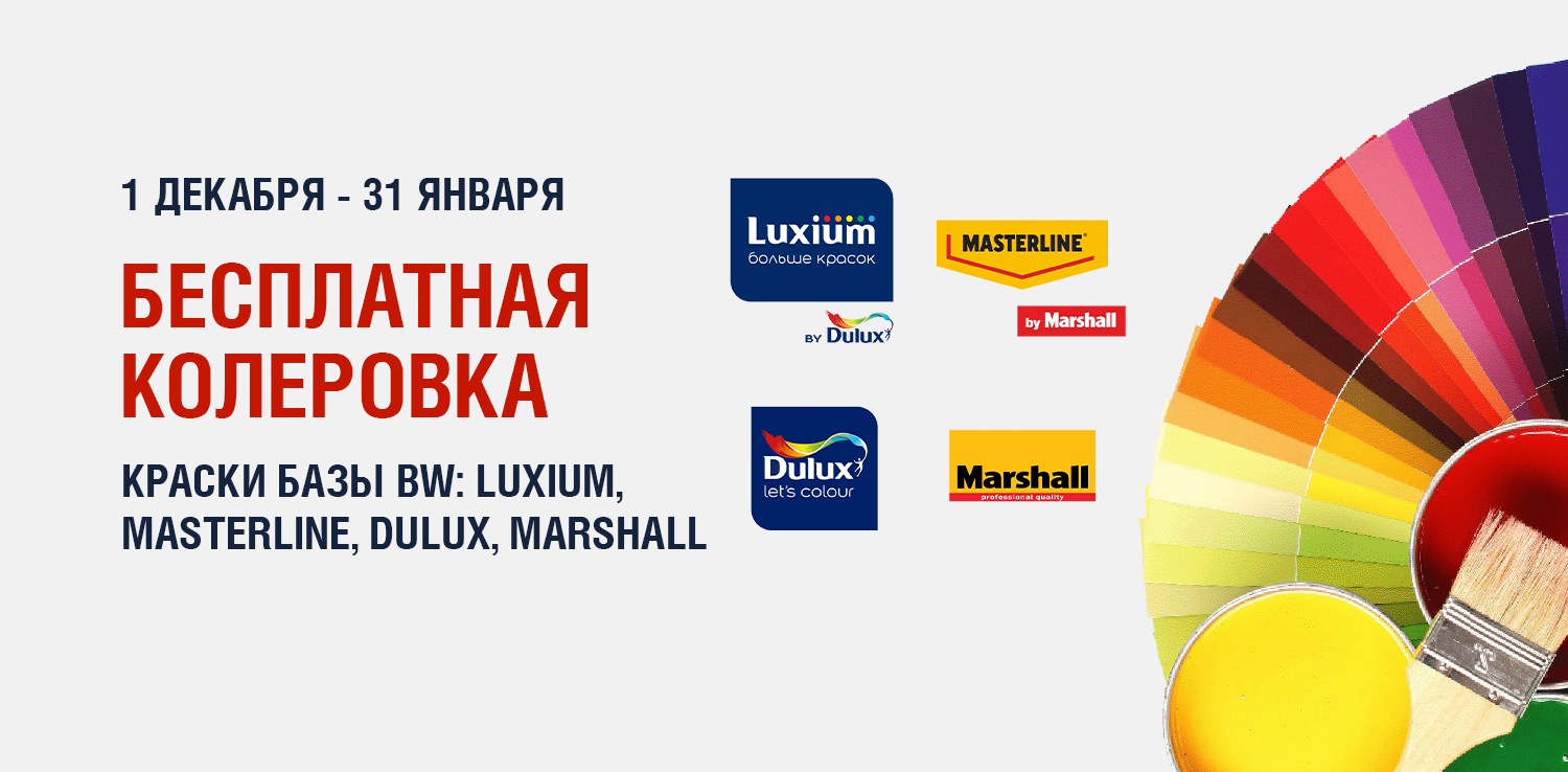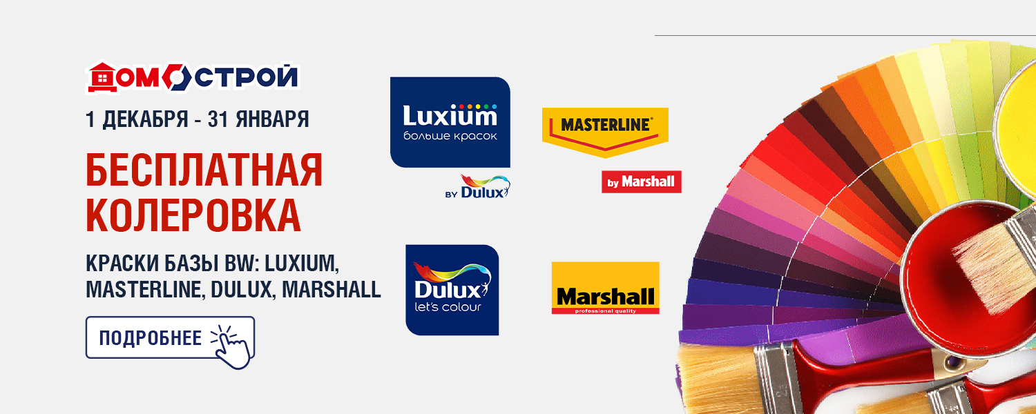 Услуга предоставляется бесплатно после приобретения продукции одной из торговых марок Luxium, Masterline, Dulux, Marshall только в розничном магазине ДомоСтрой в г. Пермь.